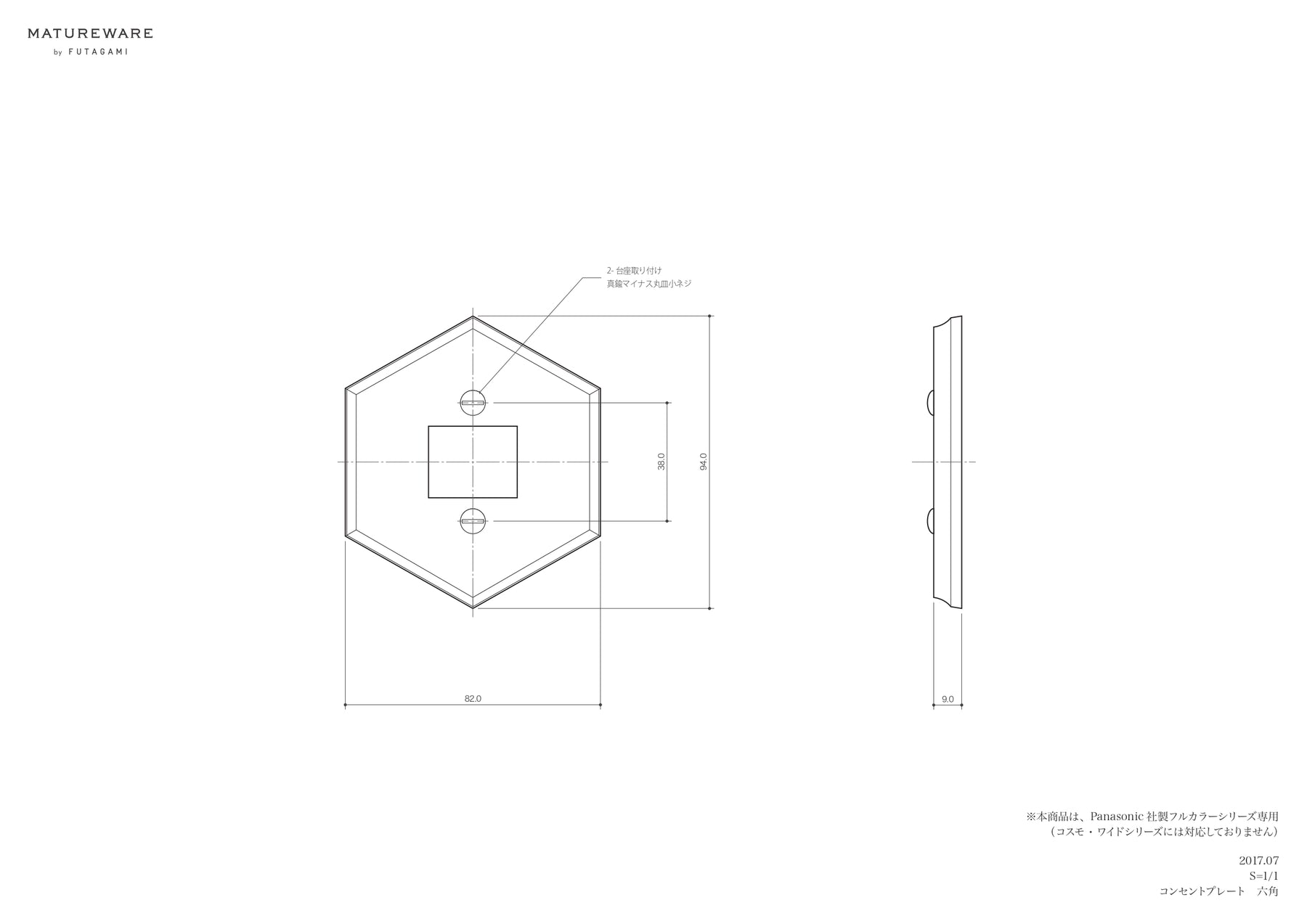 フタガミ プレート 真鍮 半連1口用 六角