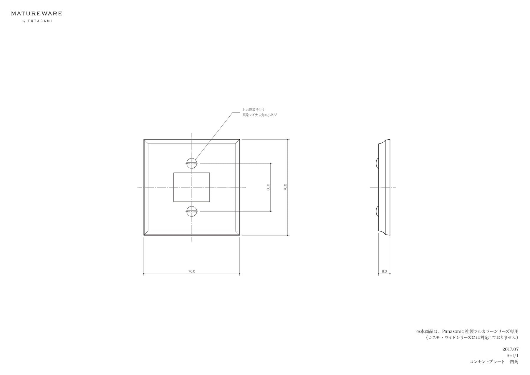 圧着端子、R2-3.5に対応。埋め込みボックスは未来工業「SB-1H」に対応。ただし、施工時に90度回転させる。