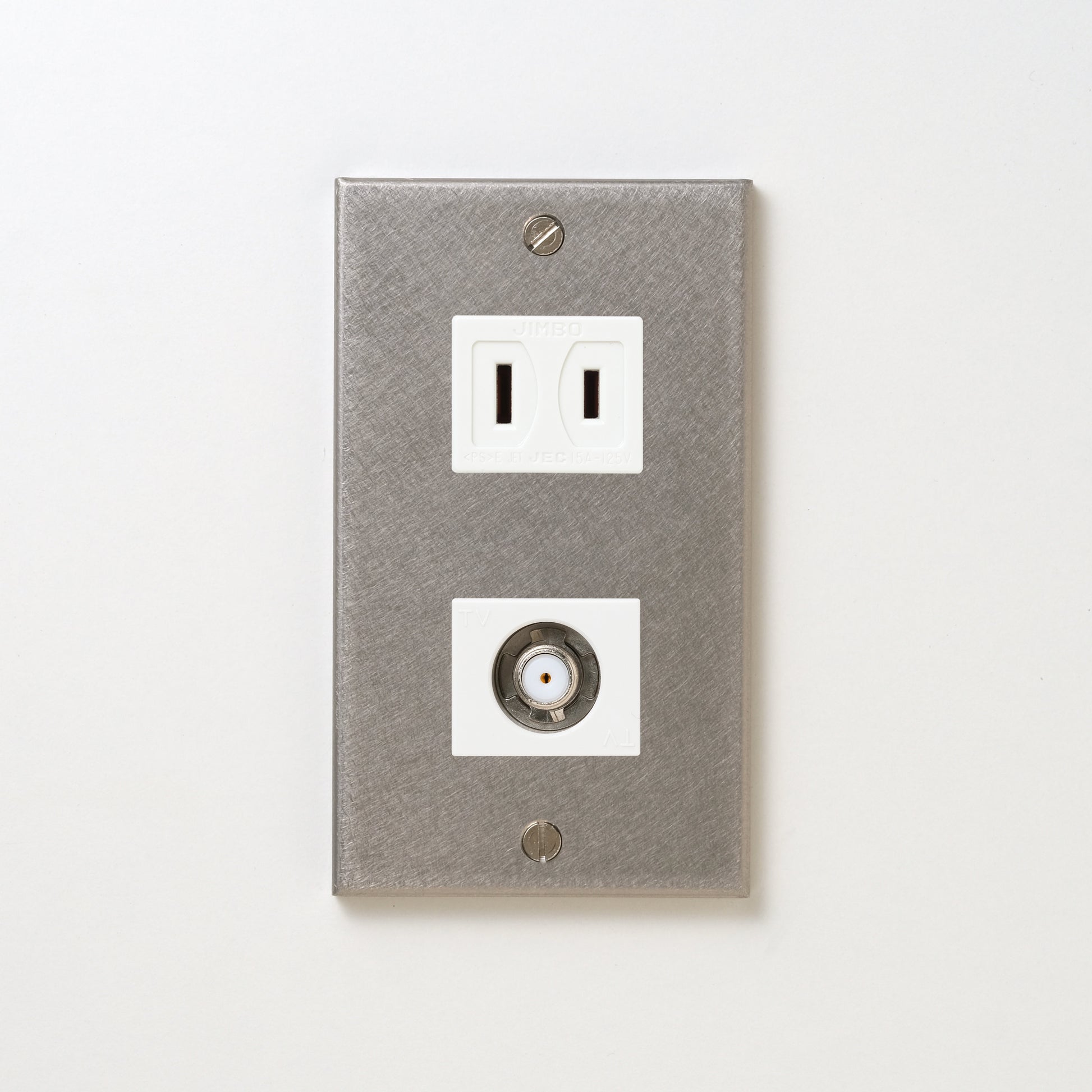 ステンレス(バイブレーション)プレート<br>+ NK 新4K8K衛星放送対応 埋込小型高シールドテレビ端子 ホワイト <br>+ NK 埋込コンセント ホワイト