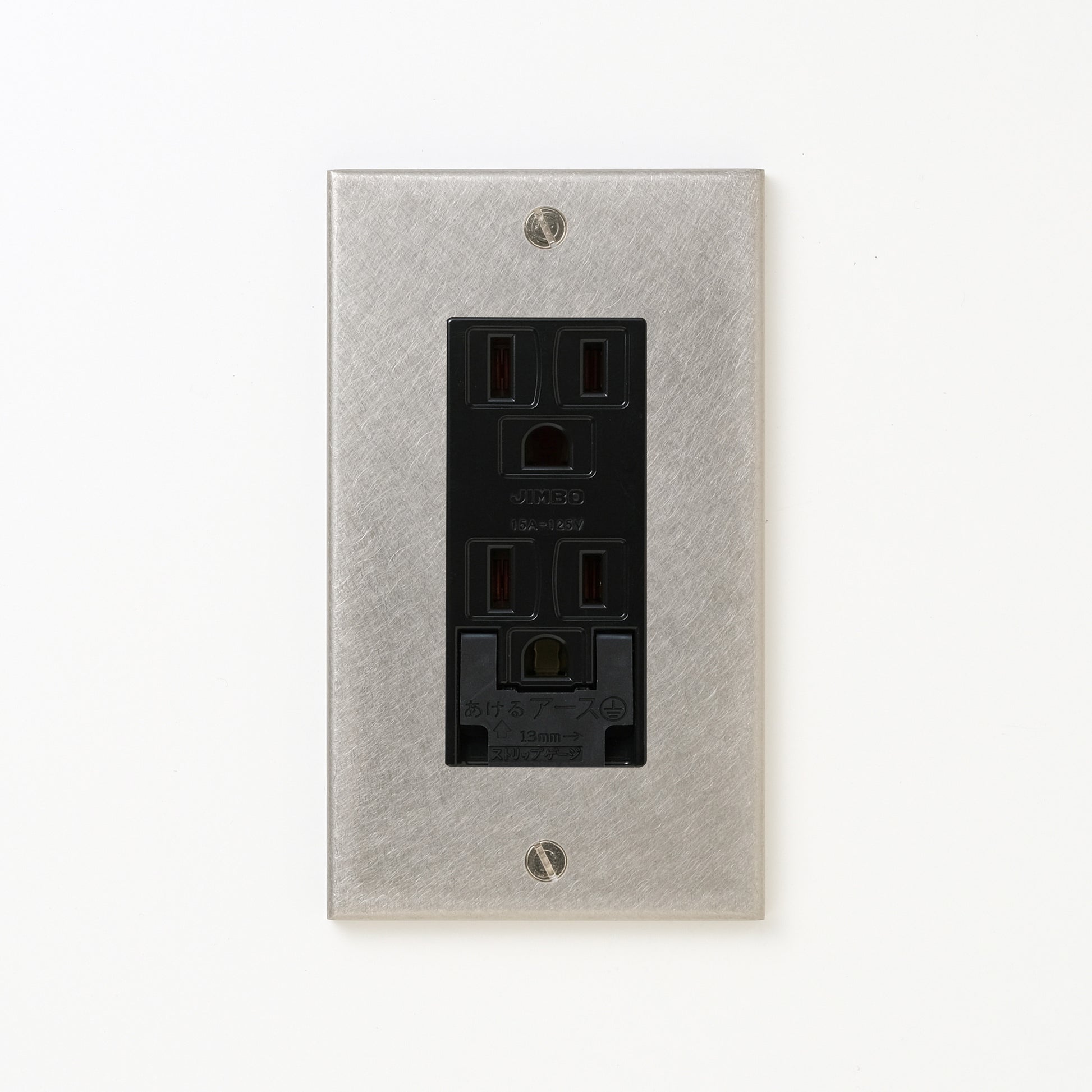 ステンレス(バイブレーション)プレート <br>+ NK 埋込アースターミナル付接地ダブルコンセント ブラック