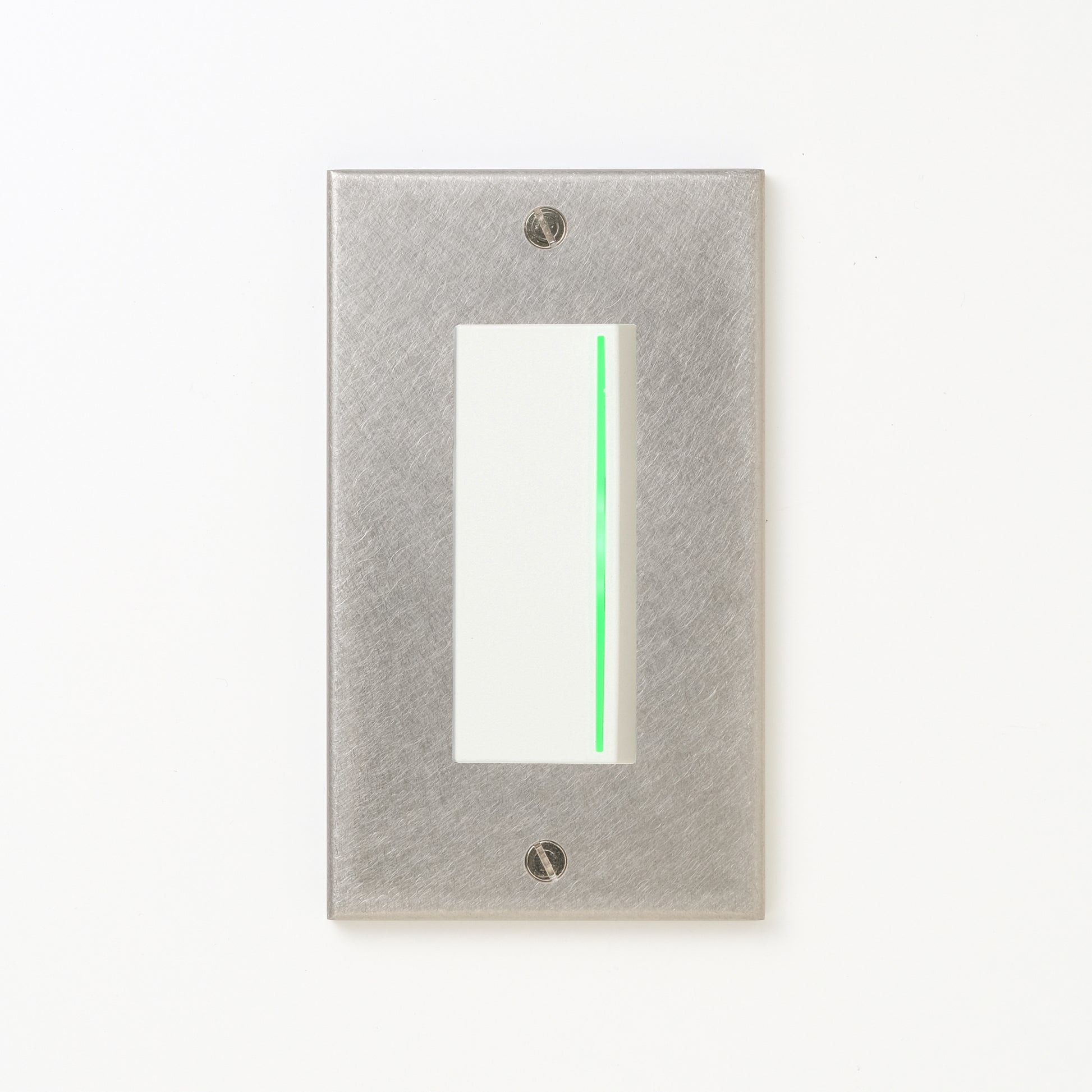 ステンレス(バイブレーション)プレート <br>+ NK 片切、3路ガイドランプ(グリーン)付スイッチシングル ホワイト