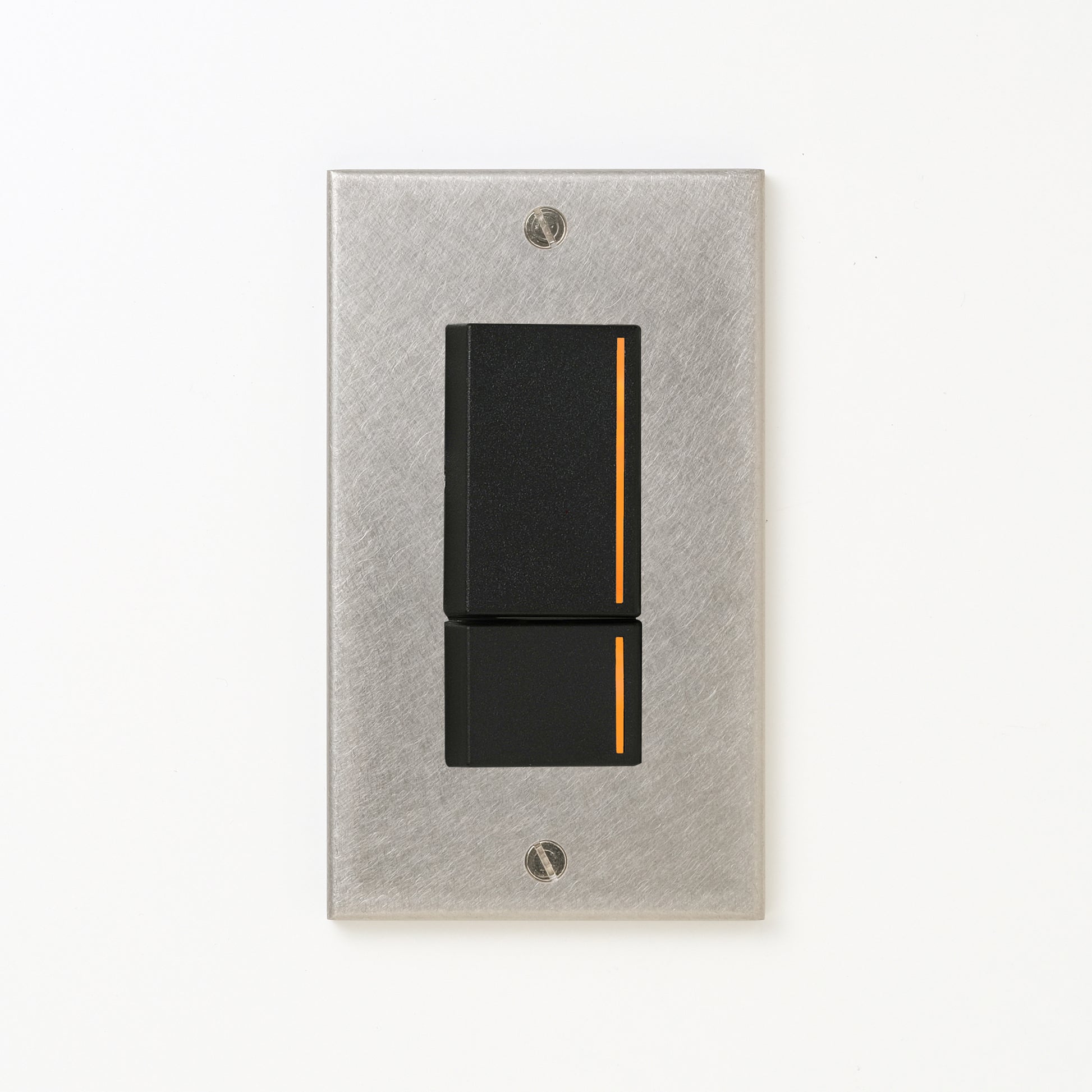ステンレス(バイブレーション)プレート <br>+ NK 片切、3路チェックランプ(オレンジ)スイッチダブル(上段大) ブラック