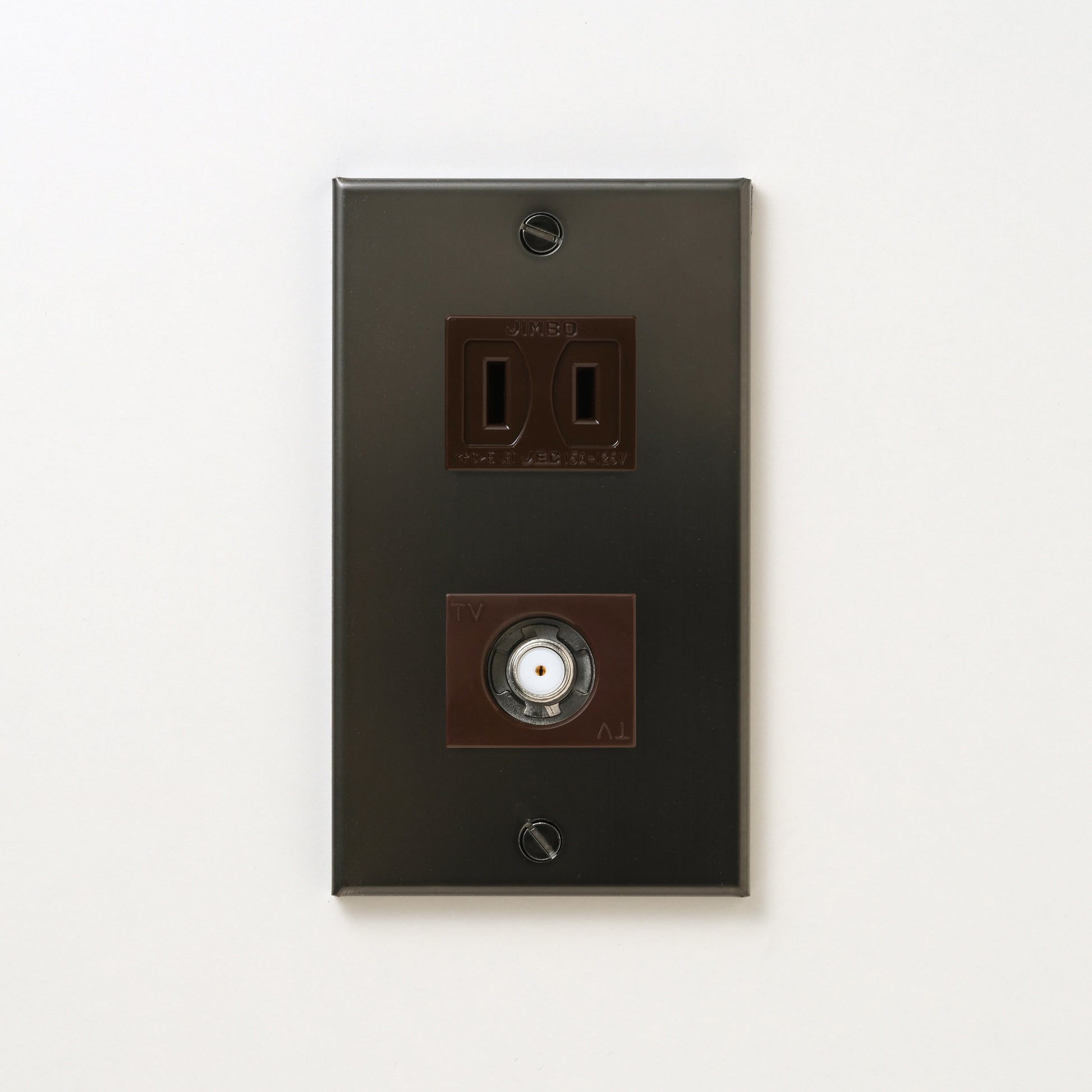 ステンレス(マットブラック)プレート<br>+ NK 新4K8K衛星放送対応 埋込小型高シールドテレビ端子 チョコ <br>+ NK 埋込コンセント チョコ