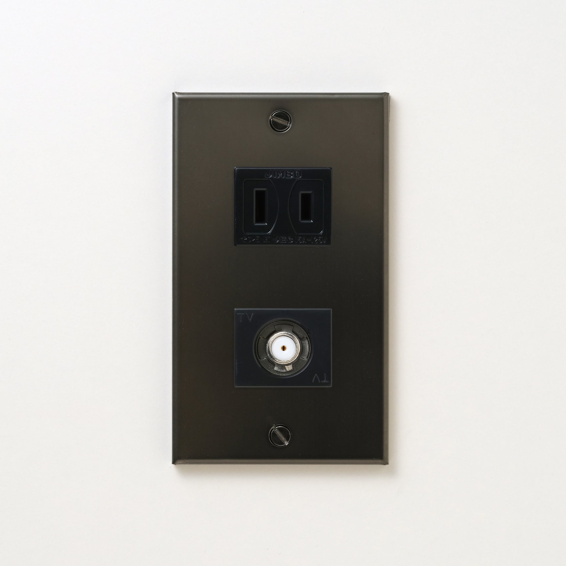 ステンレス(マットブラック)プレート<br>+ NK 新4K8K衛星放送対応 埋込小型高シールドテレビ端子 ブラック <br>+ NK 埋込コンセント ブラック
