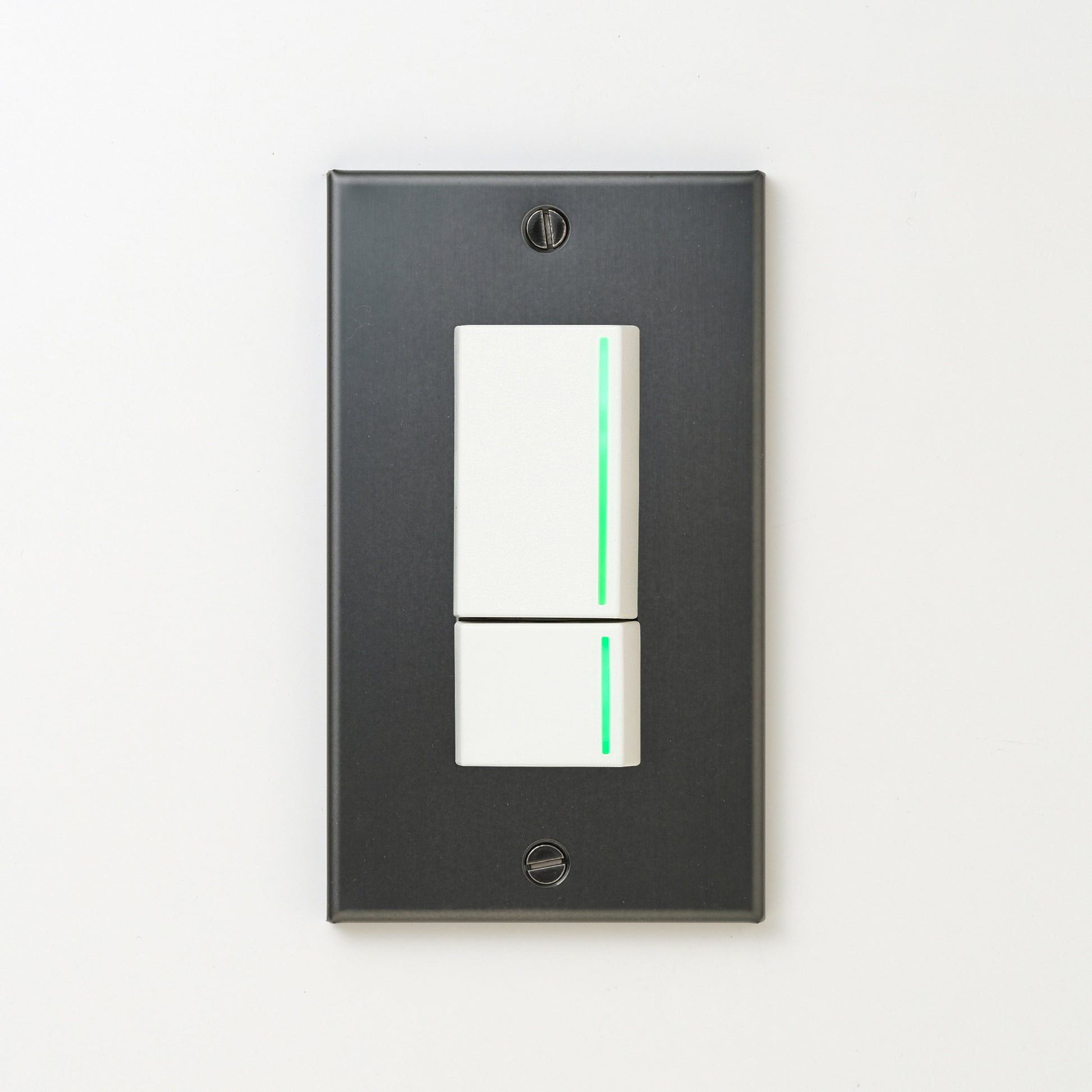 ステンレス(マットブラック)プレート <br>+ NK 片切、3路ガイドランプ(グリーン)スイッチダブル(上段大) ホワイト
