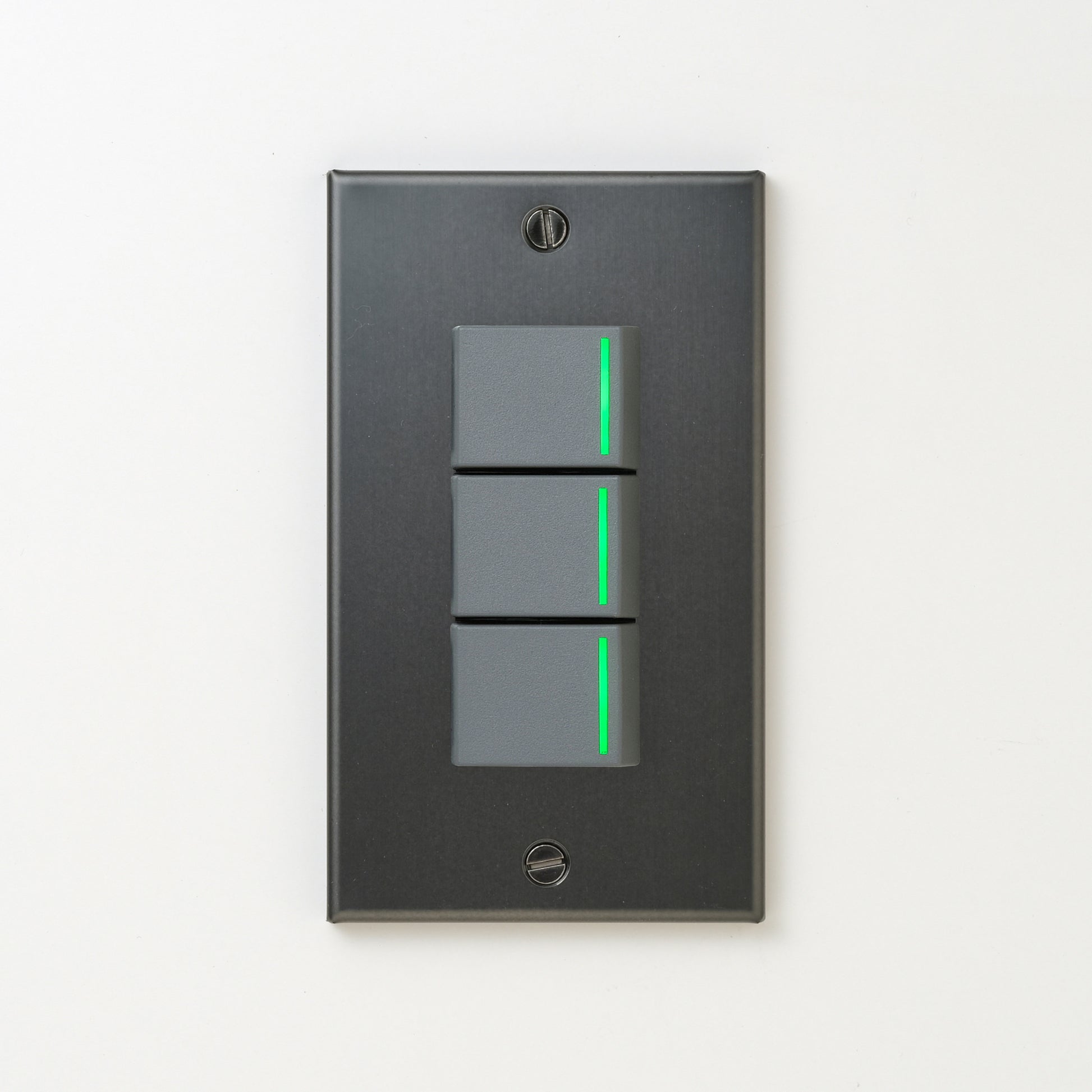 ステンレス(マットブラック)プレート <br>+ NK 片切、3路ガイドランプ(グリーン)スイッチトリプル グレー