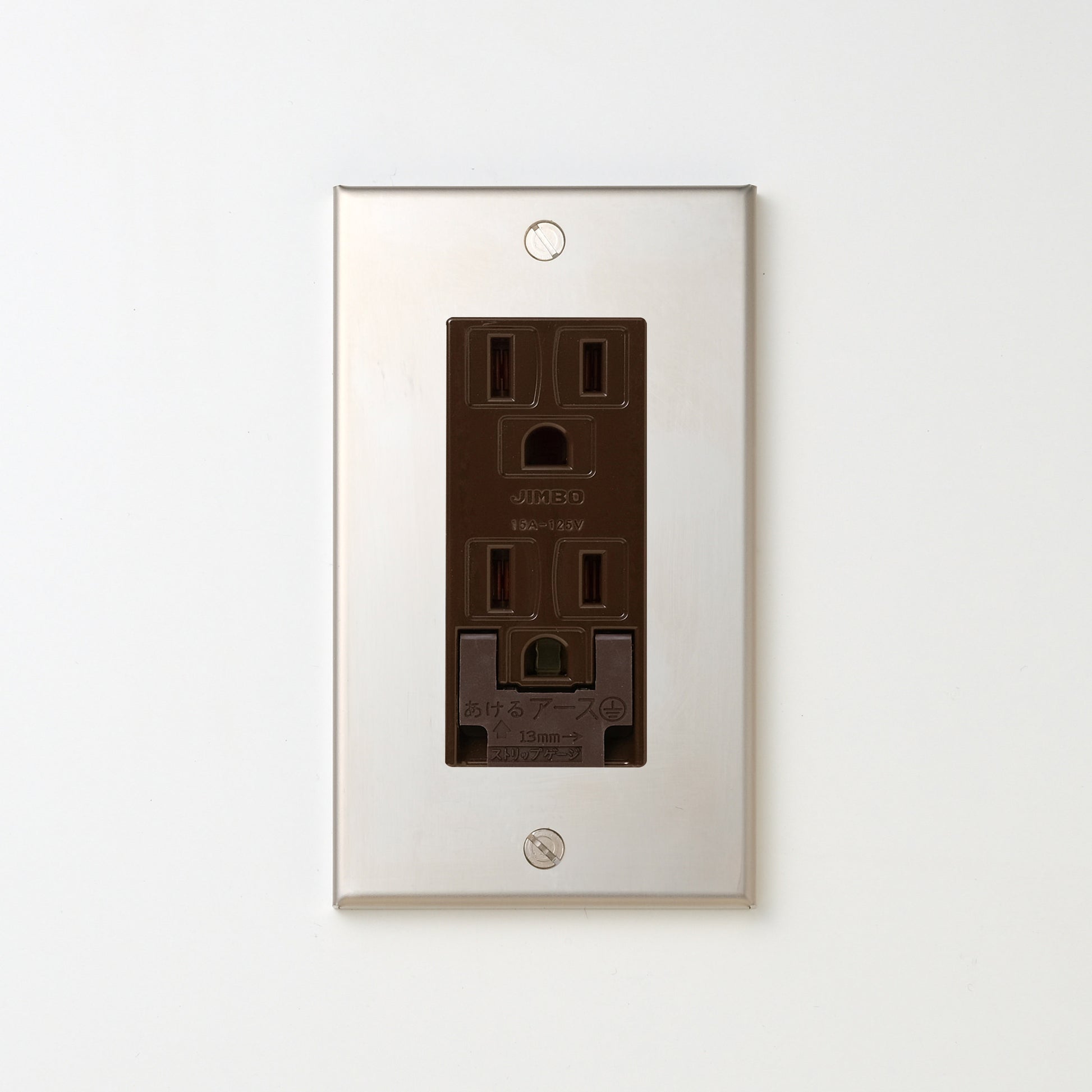 ステンレス素地 プレート <br>+ NK 埋込アースターミナル付接地ダブルコンセント チョコ