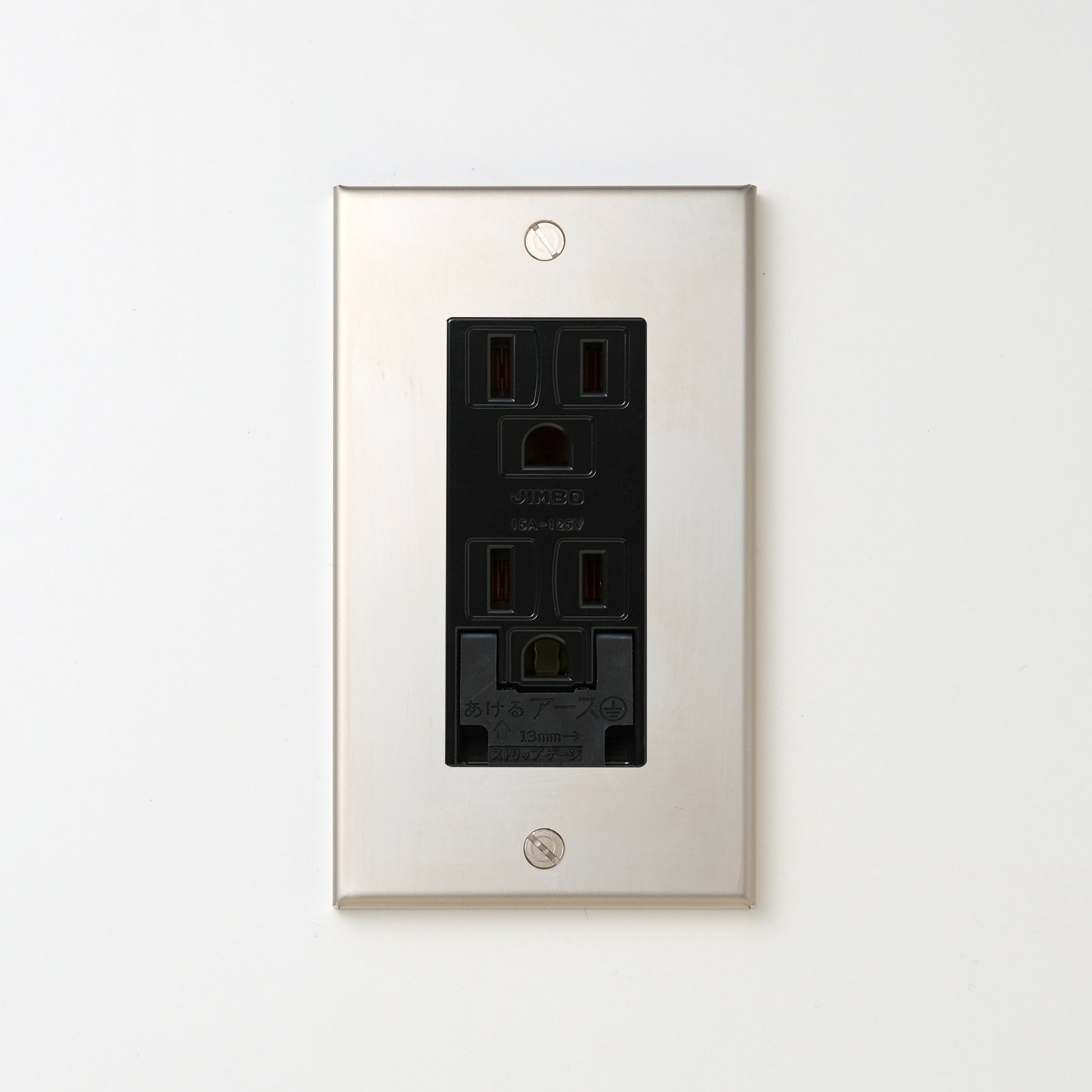 ステンレス素地 プレート <br>+ NK 埋込アースターミナル付接地ダブルコンセント ブラック