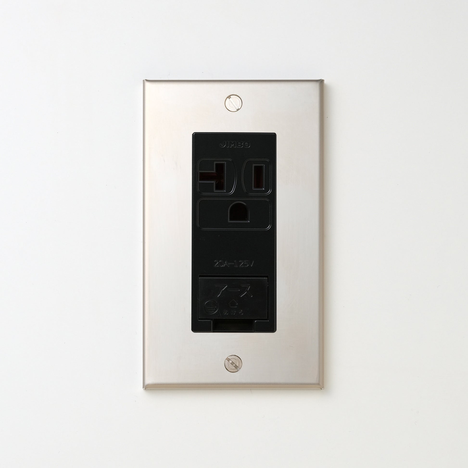 ステンレス素地 プレート <br>+ NK 埋込アースターミナル付接地15A、20Aコンセント 125V ブラック