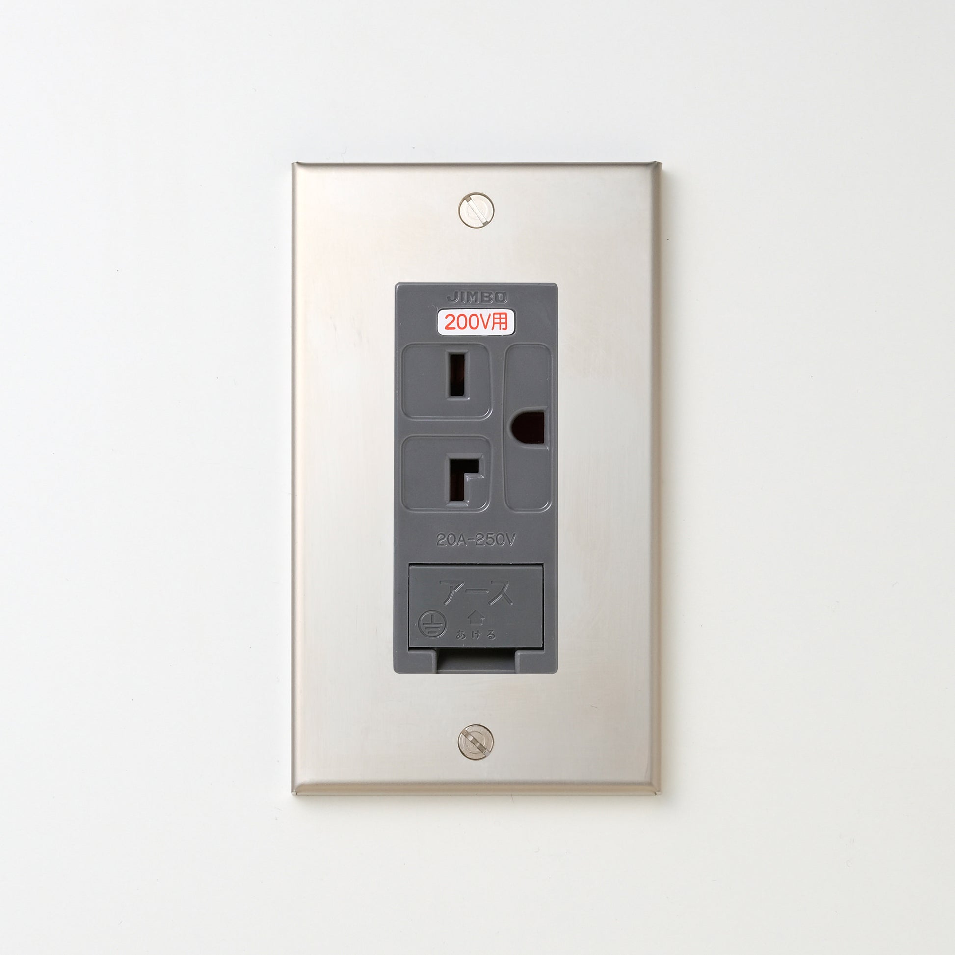 ステンレス素地 プレート <br>+ NK 埋込アースターミナル付接地15A、20Aコンセント 250V グレー