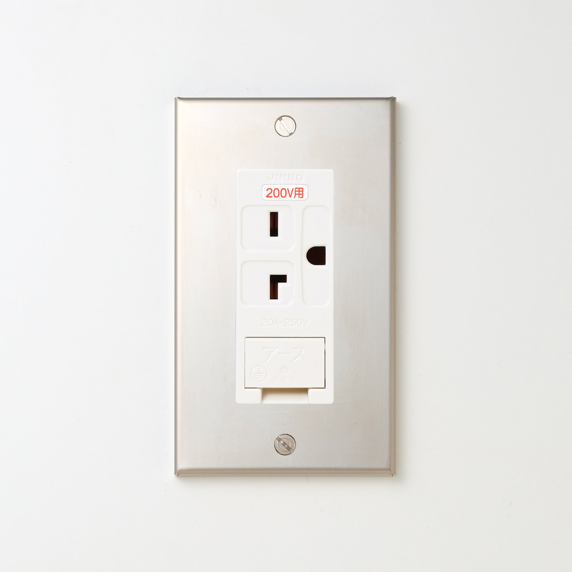 ステンレス素地 プレート <br>+ NK 埋込アースターミナル付接地15A、20Aコンセント 250V ホワイト