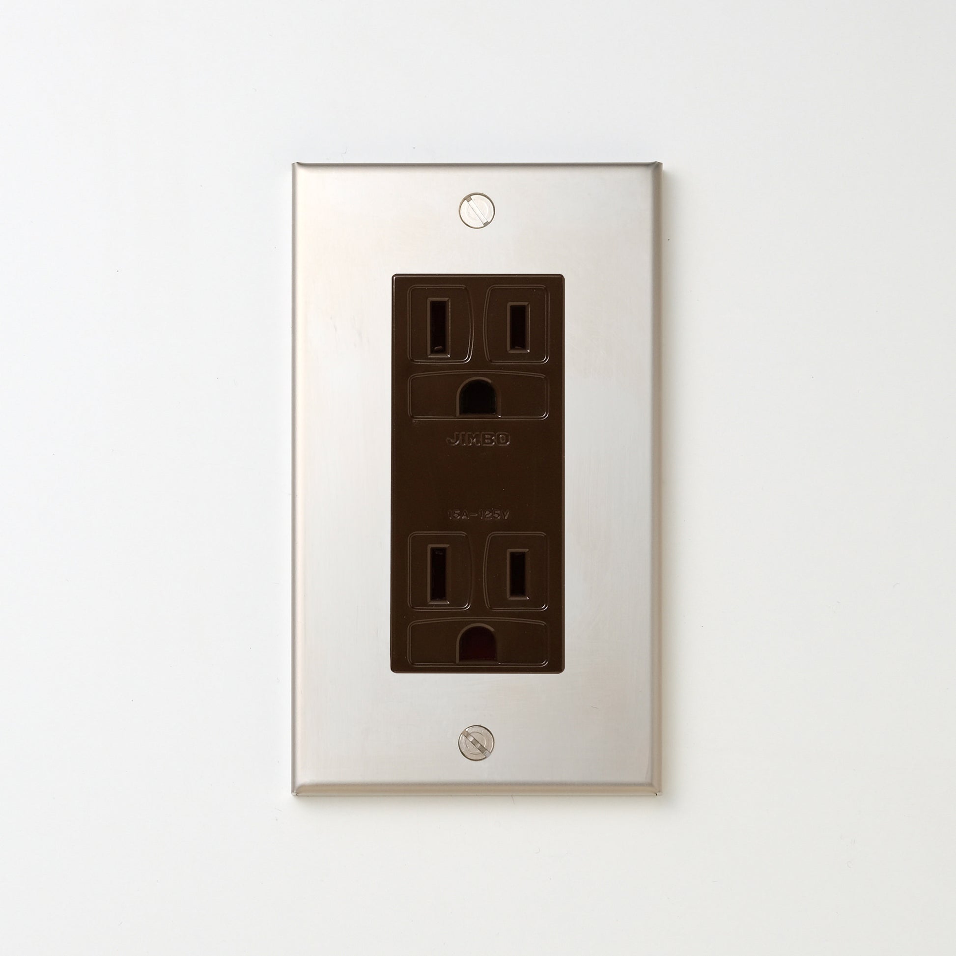 ステンレス素地 プレート <br>+ NK 埋込接地(アース)ダブルコンセント チョコ