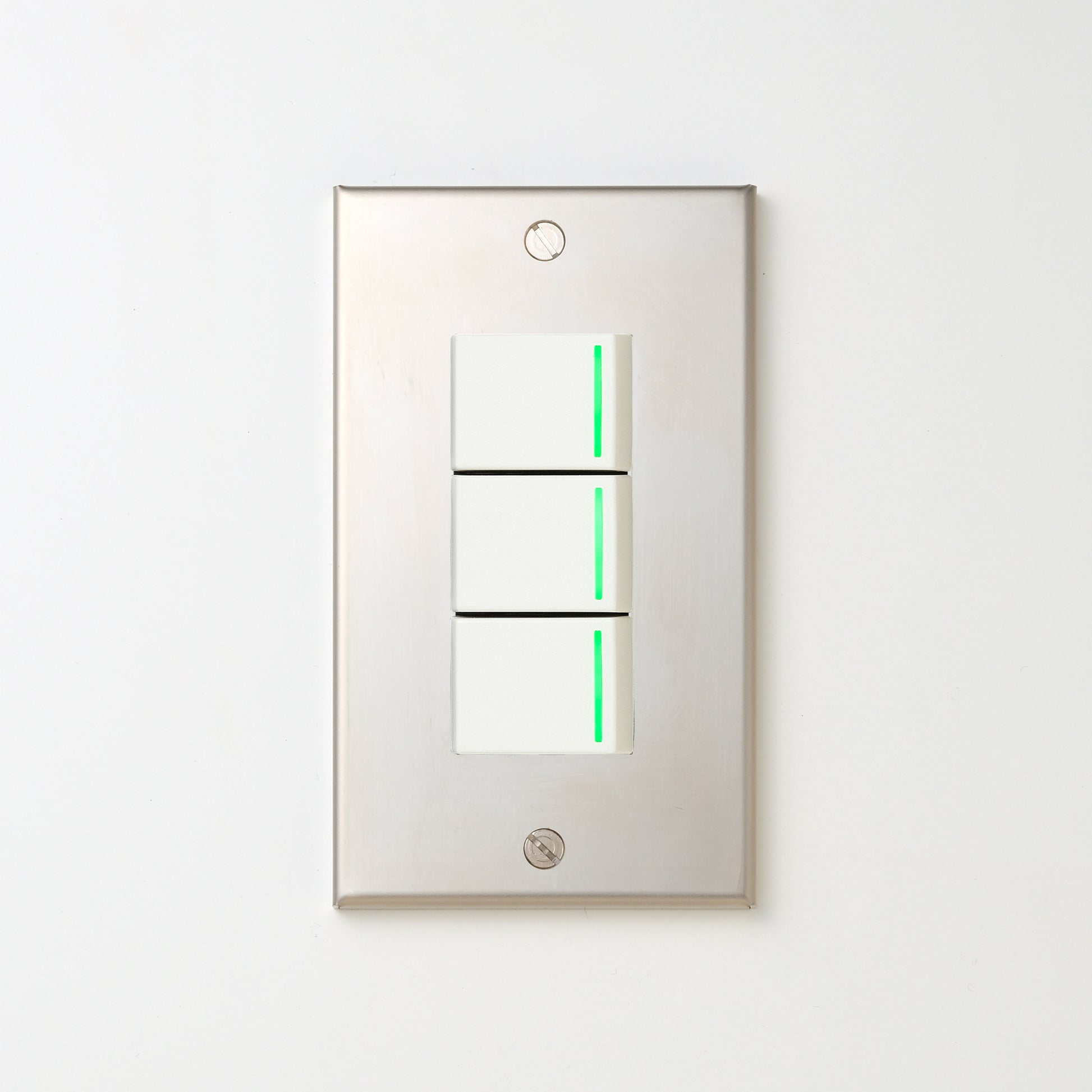 ステンレス素地 プレート <br>+ NK 片切、3路ガイドランプ(グリーン)スイッチトリプル ホワイト