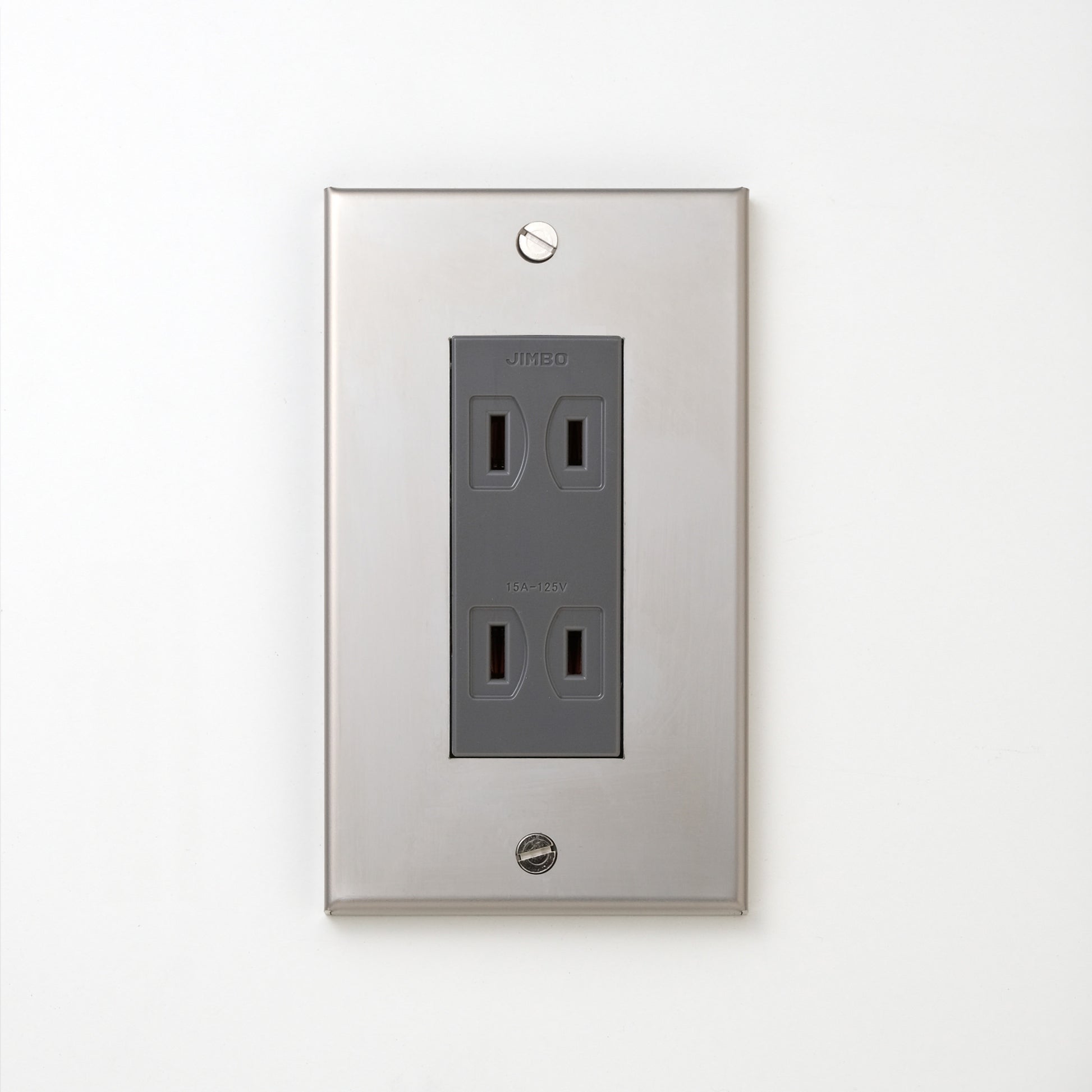 ステンレス(素地) プレート <br>+ NK ダブルコンセント グレー