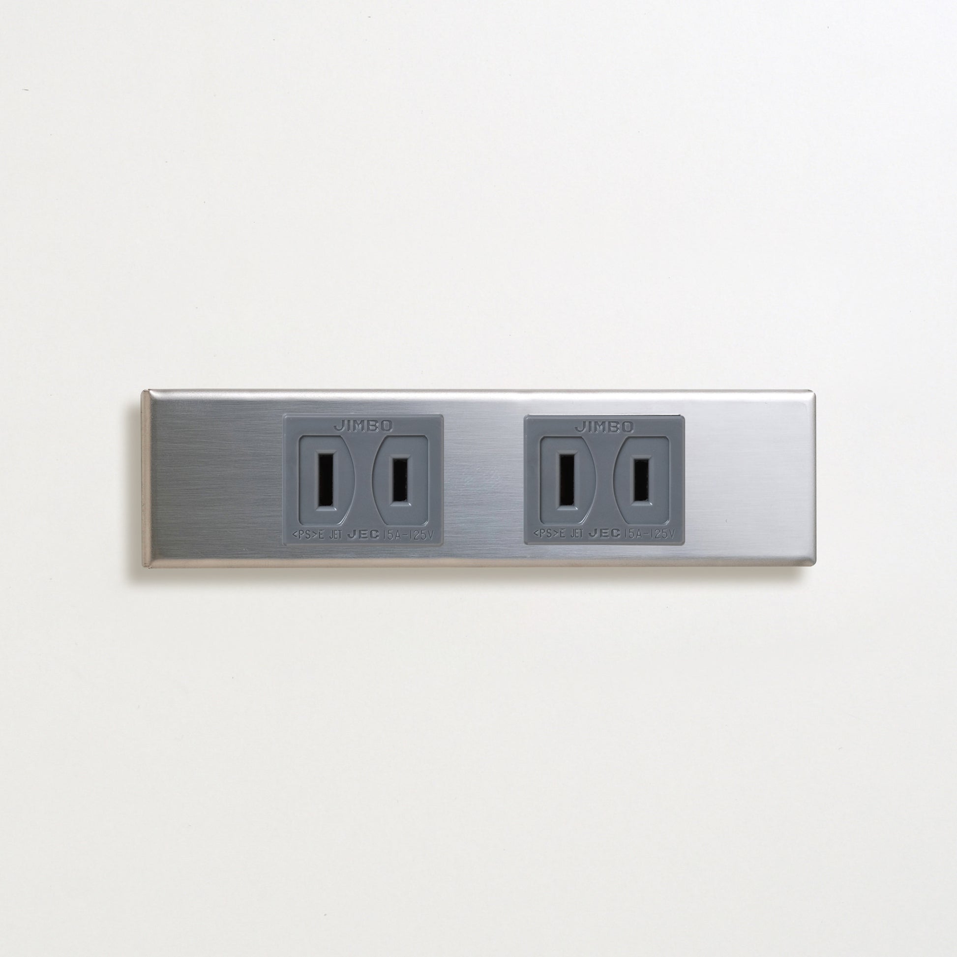ステンレス(素地) 家具用プレート<br>+ NK 埋込コンセント グレー ×2