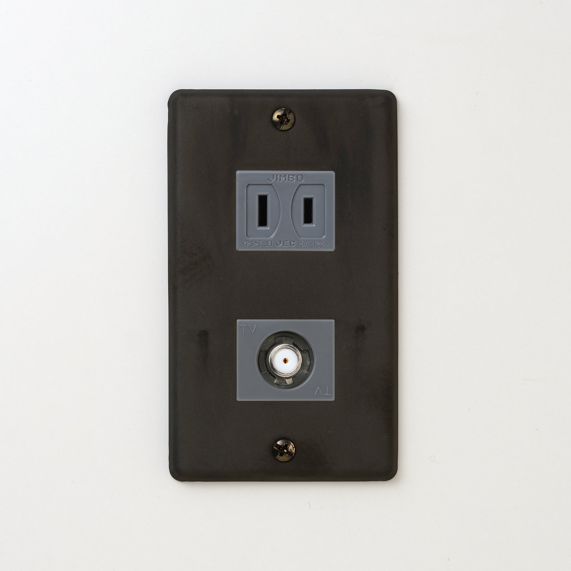 ステンレス(黒染)プレート<br>+ NK 新4K8K衛星放送対応 埋込小型高シールドテレビ端子 グレー <br>+ NK 埋込コンセント グレー