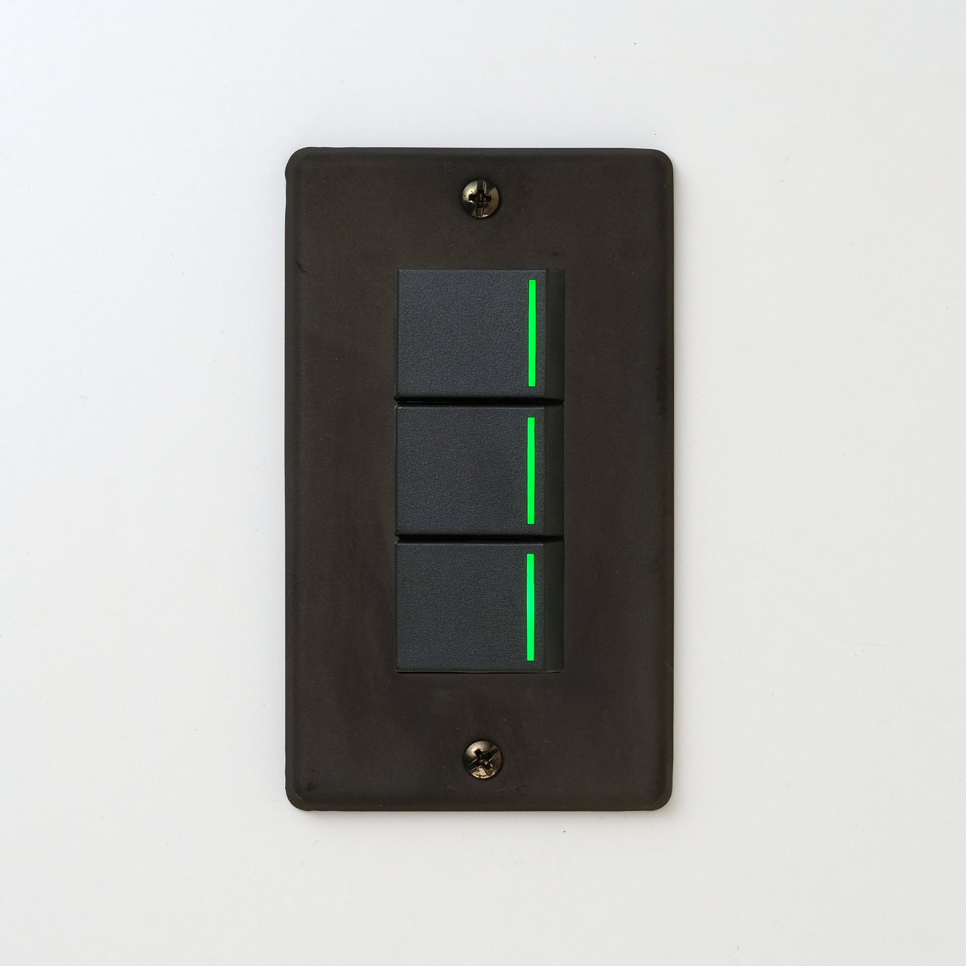 ステンレス(黒染)プレート <br>+ NK 片切、3路ガイドランプ(グリーン)スイッチトリプル ブラック