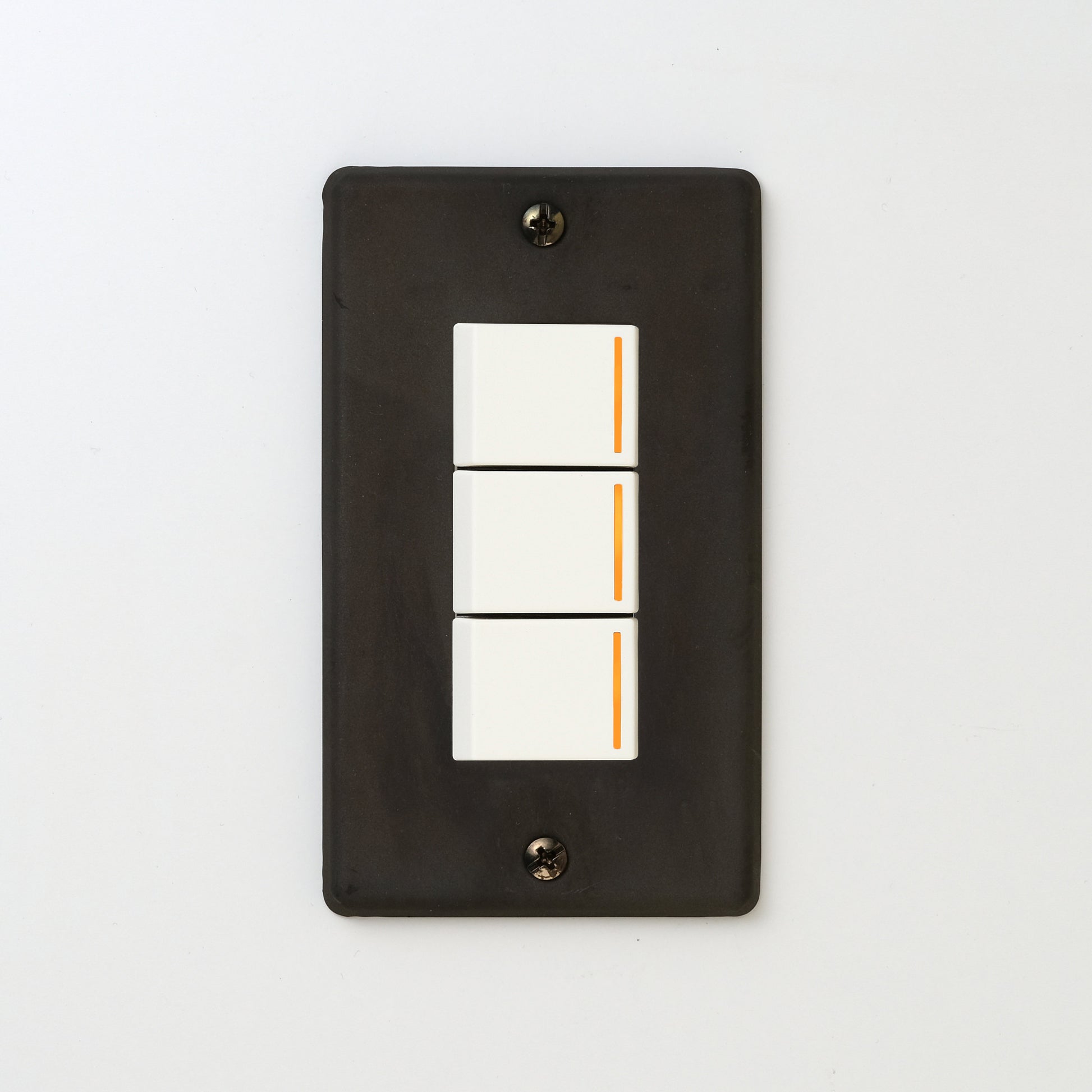 ステンレス(黒染)プレート <br>+ NK 片切、3路チェックランプ(オレンジ)スイッチトリプル ホワイト