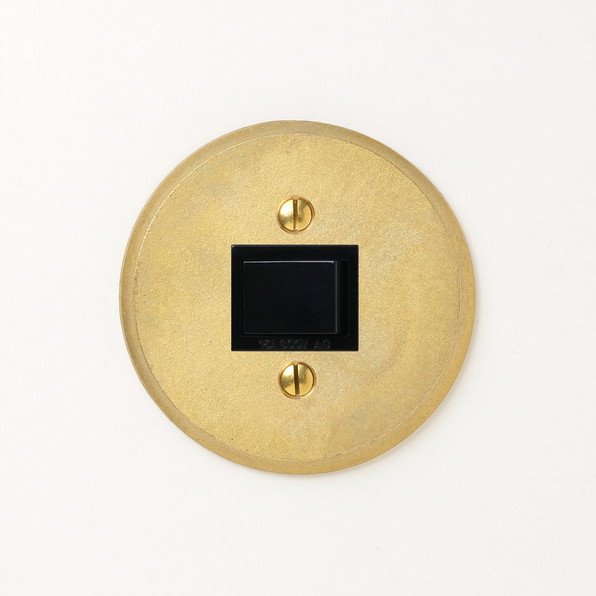 真鍮鋳造プレート(鋳肌) 半連1口用 丸 <br>+ パナソニック 埋込スイッチ シングル ブラック