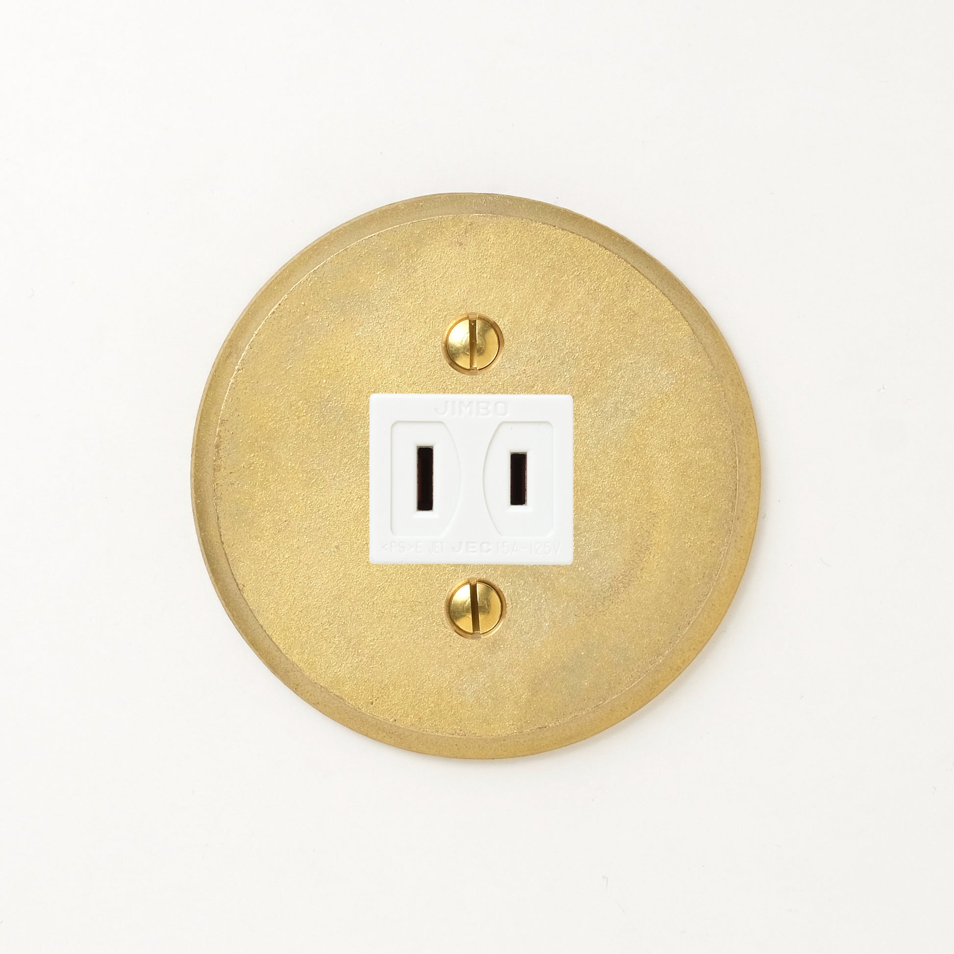 真鍮鋳造プレート(鋳肌) 半連1口用 丸 <br>+ NK 埋込コンセント ホワイト