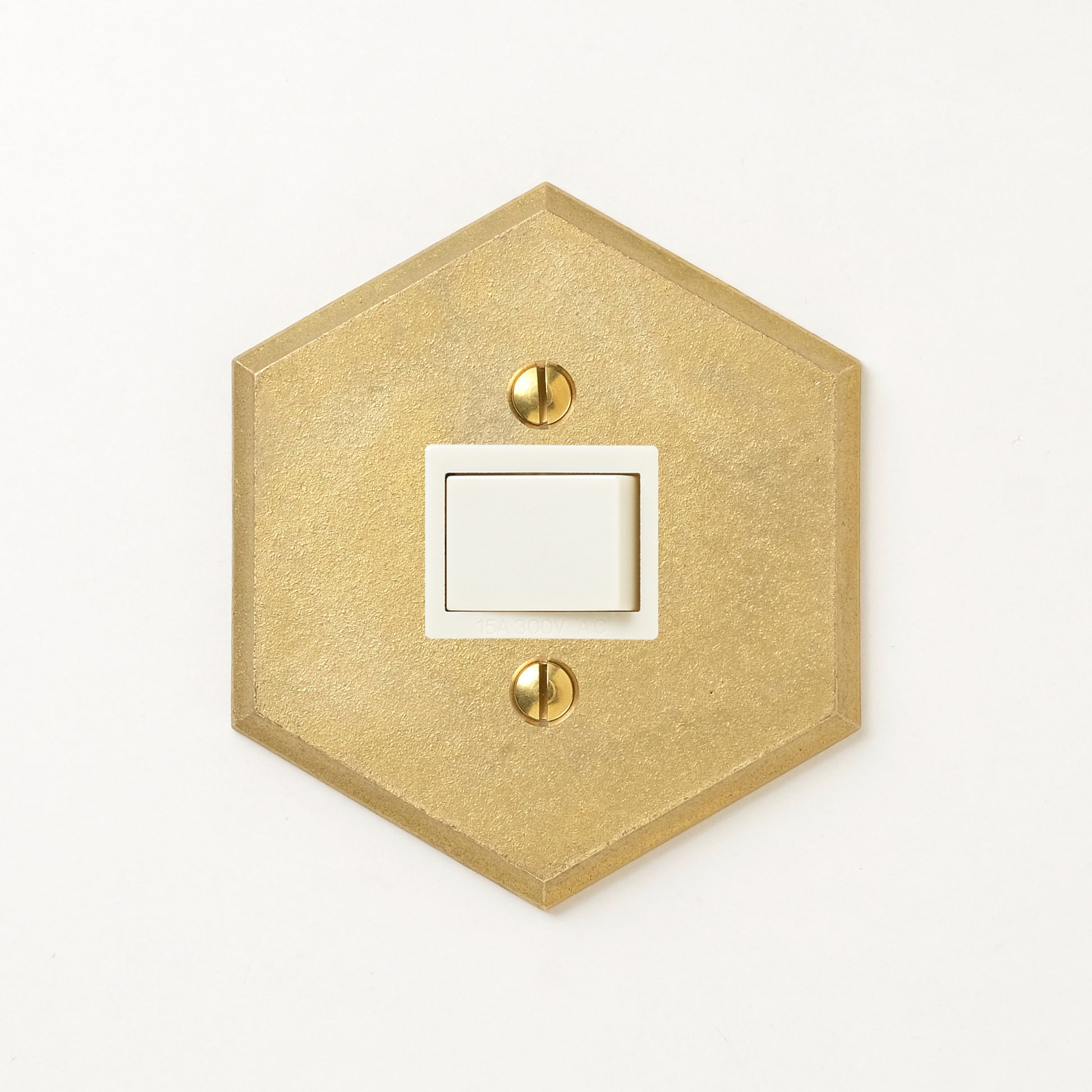 真鍮鋳造プレート(鋳肌) 半連1口用 六角 <br>+ パナソニック 埋込スイッチ シングル ホワイト