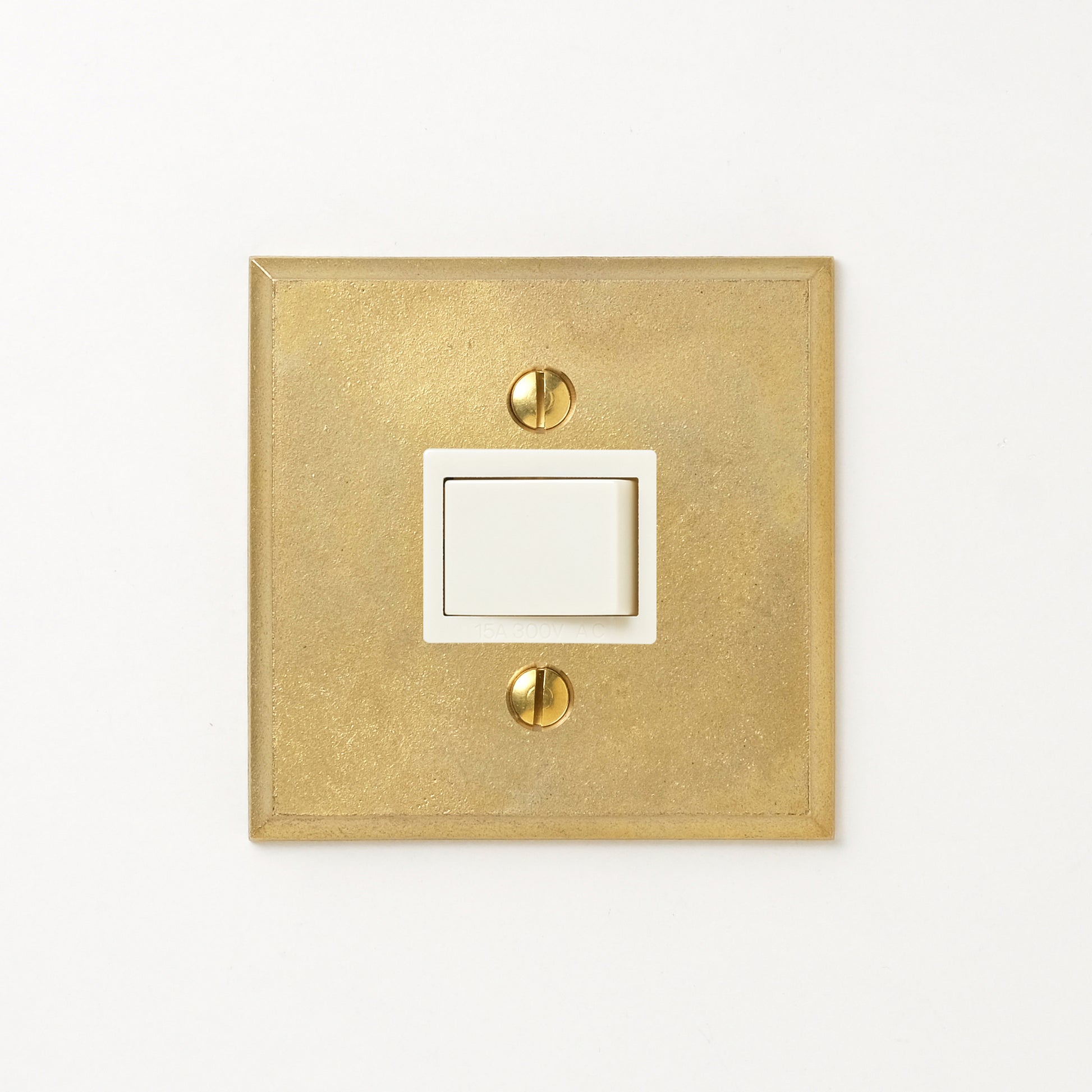 真鍮鋳造プレート(鋳肌) 半連1口用 四角 <br>+ パナソニック 埋込スイッチ シングル ホワイト