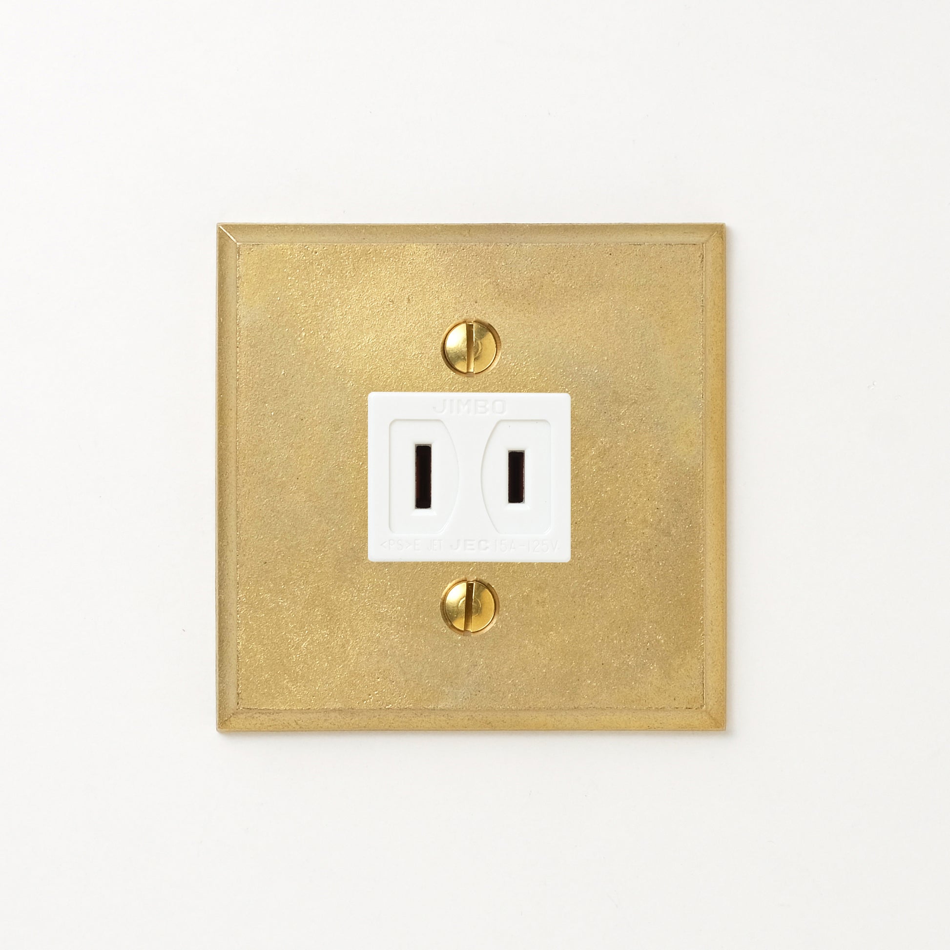 真鍮鋳造プレート(鋳肌) 半連1口用 四角 <br>+ NK 埋込コンセント ホワイト
