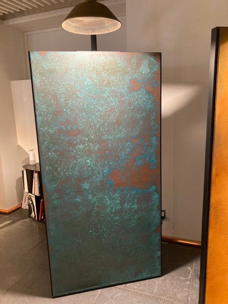 壁面材として建築用既製品で用いられるサイディングボードやプラスターボードをMetal Surface※の技術で仕上げた