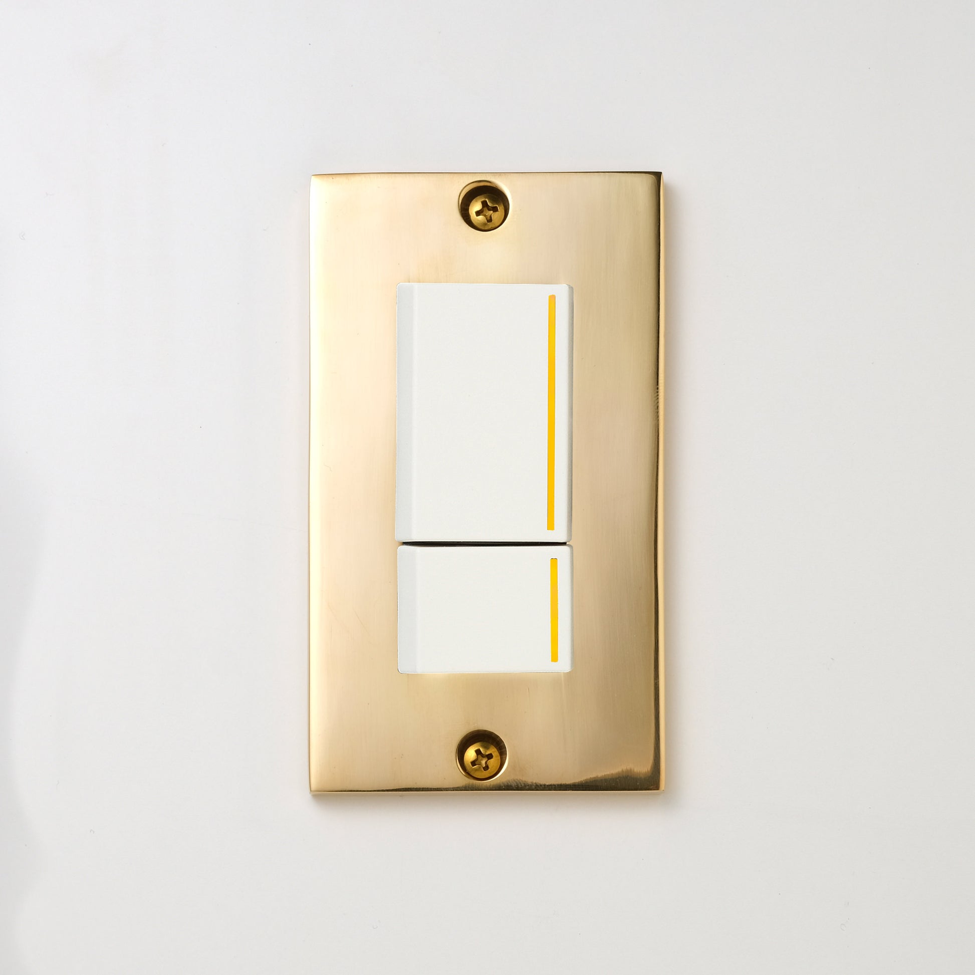 真鍮砂型鋳造(磨き)プレート <br>+ NK 片切、3路チェックランプ(オレンジ)スイッチダブル(上段大) ホワイト