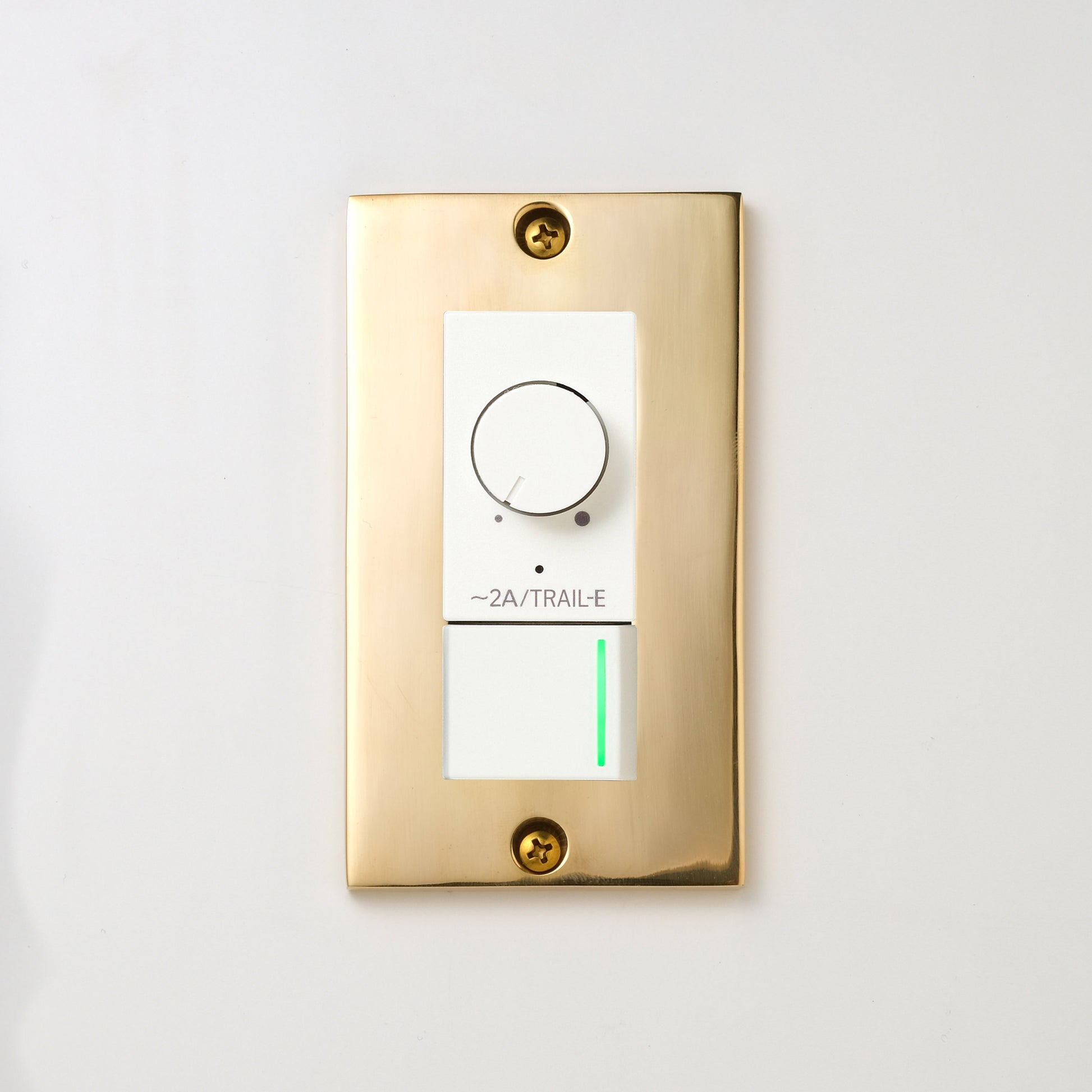 真鍮砂型鋳造(磨き)プレート <br>+ NK 逆位相制御方式ライトコントロール+片切、3路ガイドランプ(グリーン)スイッチ ホワイト