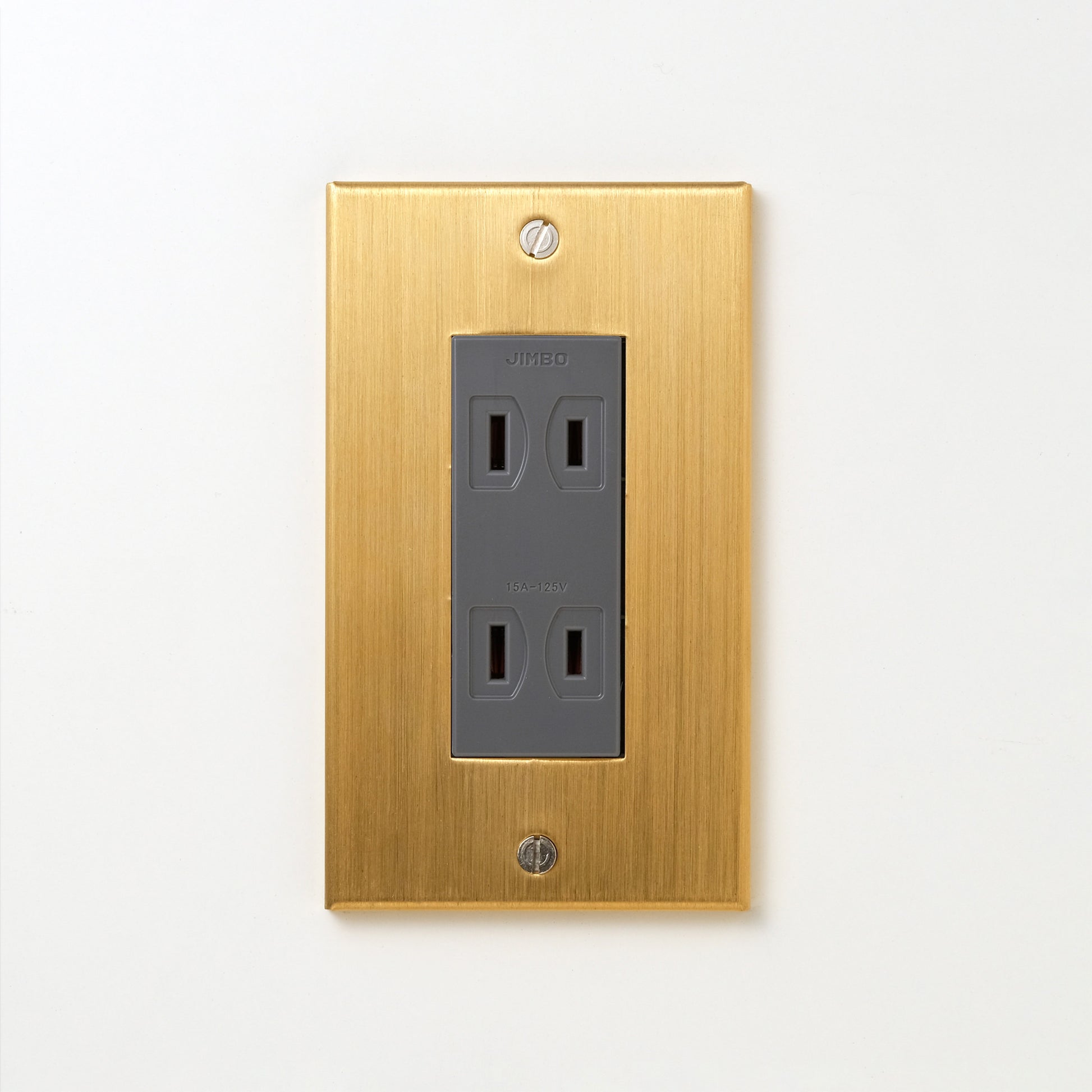 真鍮(ヘアライン) プレート <br>+ NK ダブルコンセント グレー