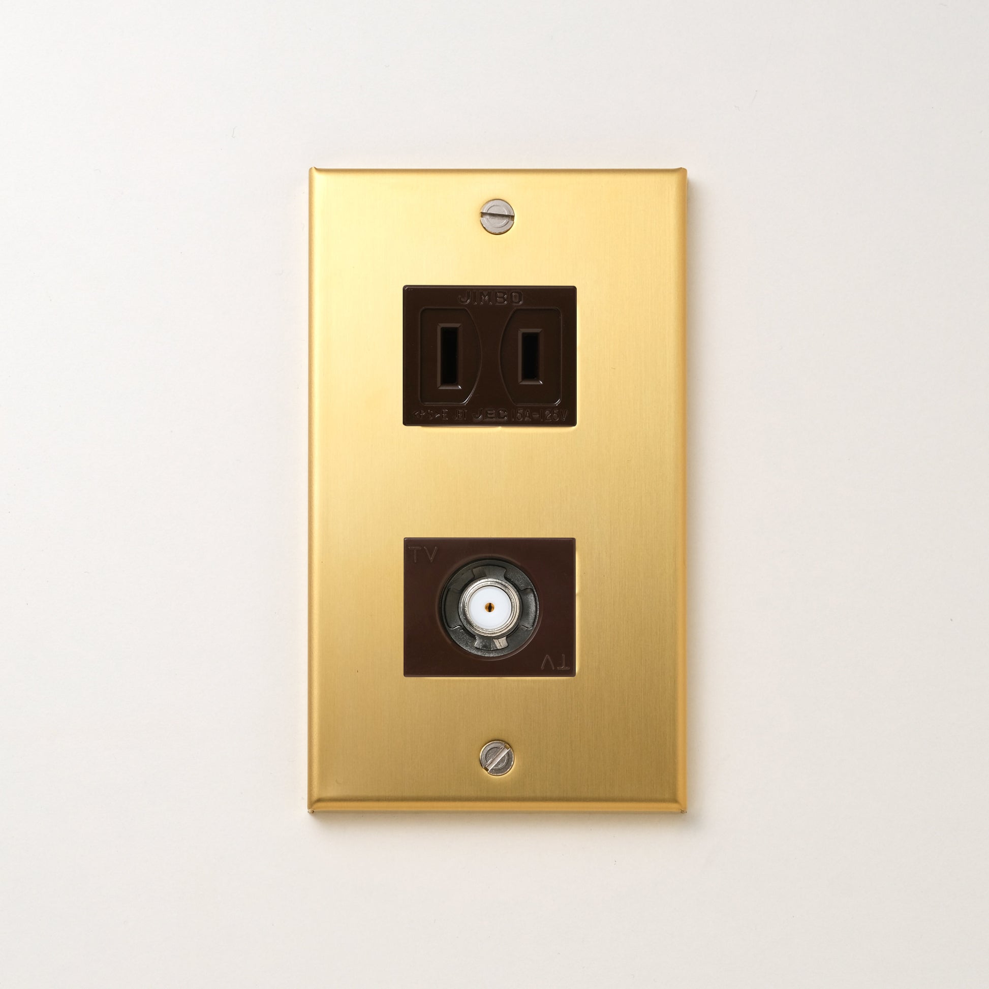 真鍮(素地) プレート<br>+ NK 新4K8K衛星放送対応 埋込小型高シールドテレビ端子 チョコ <br>+ NK 埋込コンセント チョコ