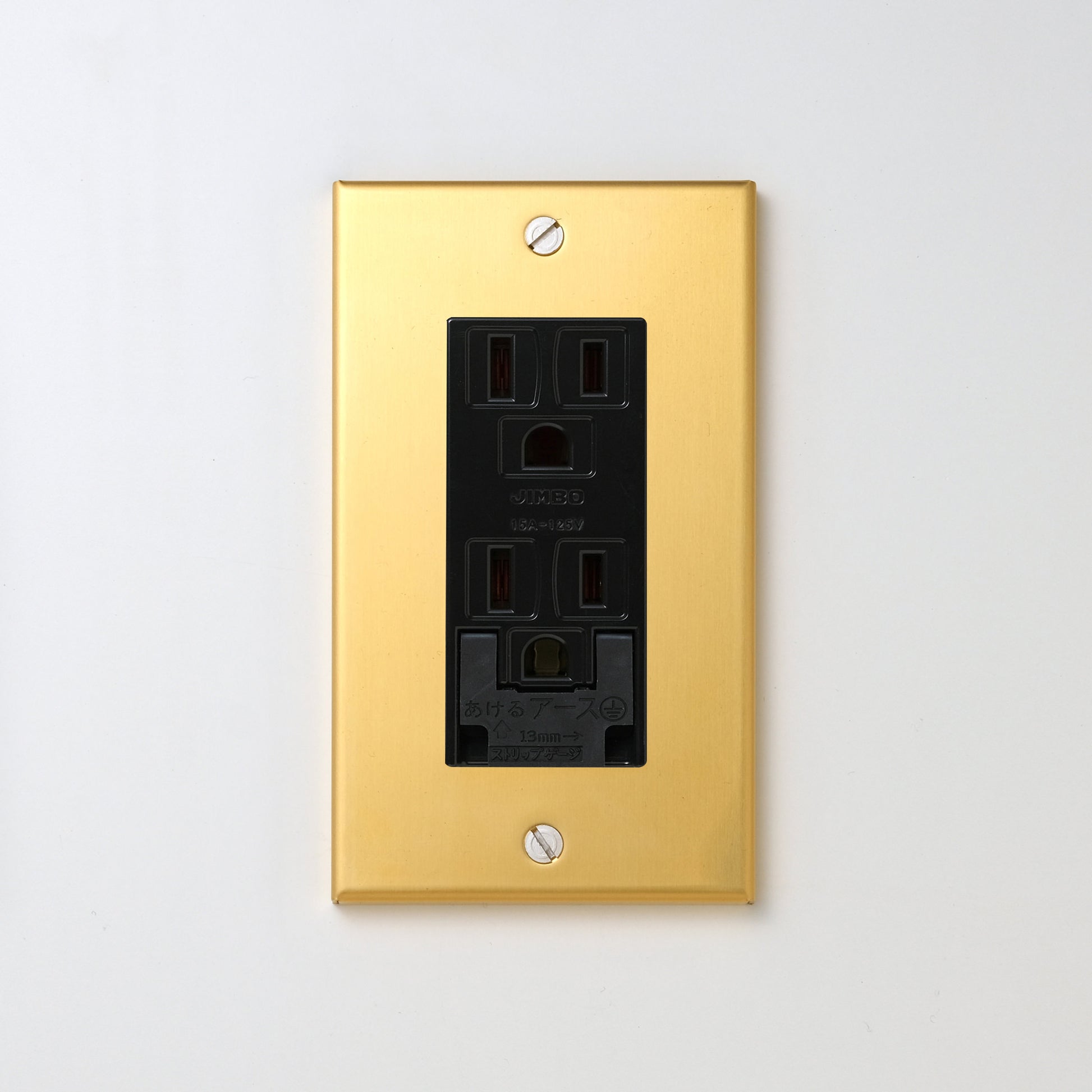 真鍮(素地) プレート <br>+ NK 埋込アースターミナル付接地ダブルコンセント ブラック