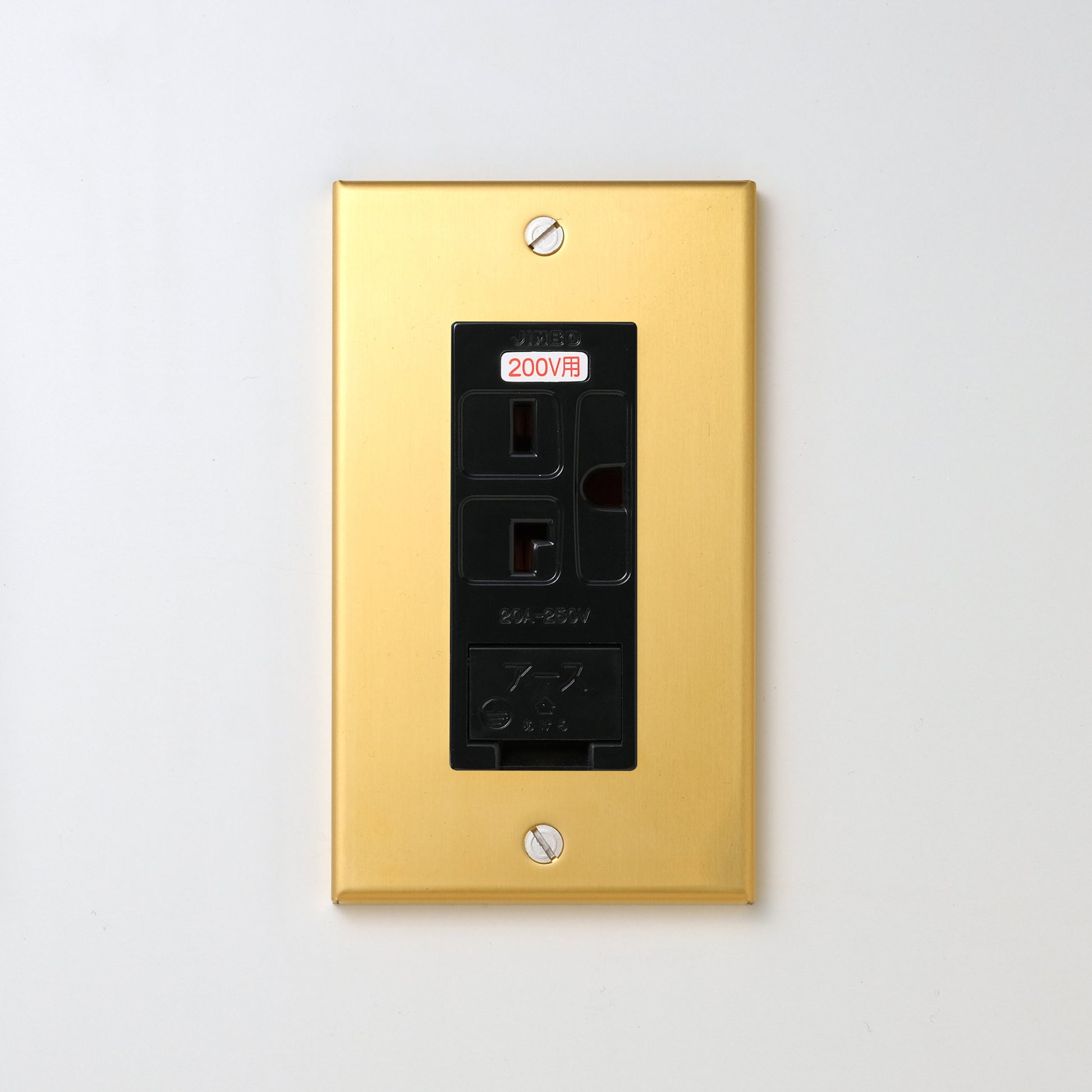 真鍮(素地) プレート <br>+ NK 埋込アースターミナル付接地15A、20Aコンセント 250V ブラック
