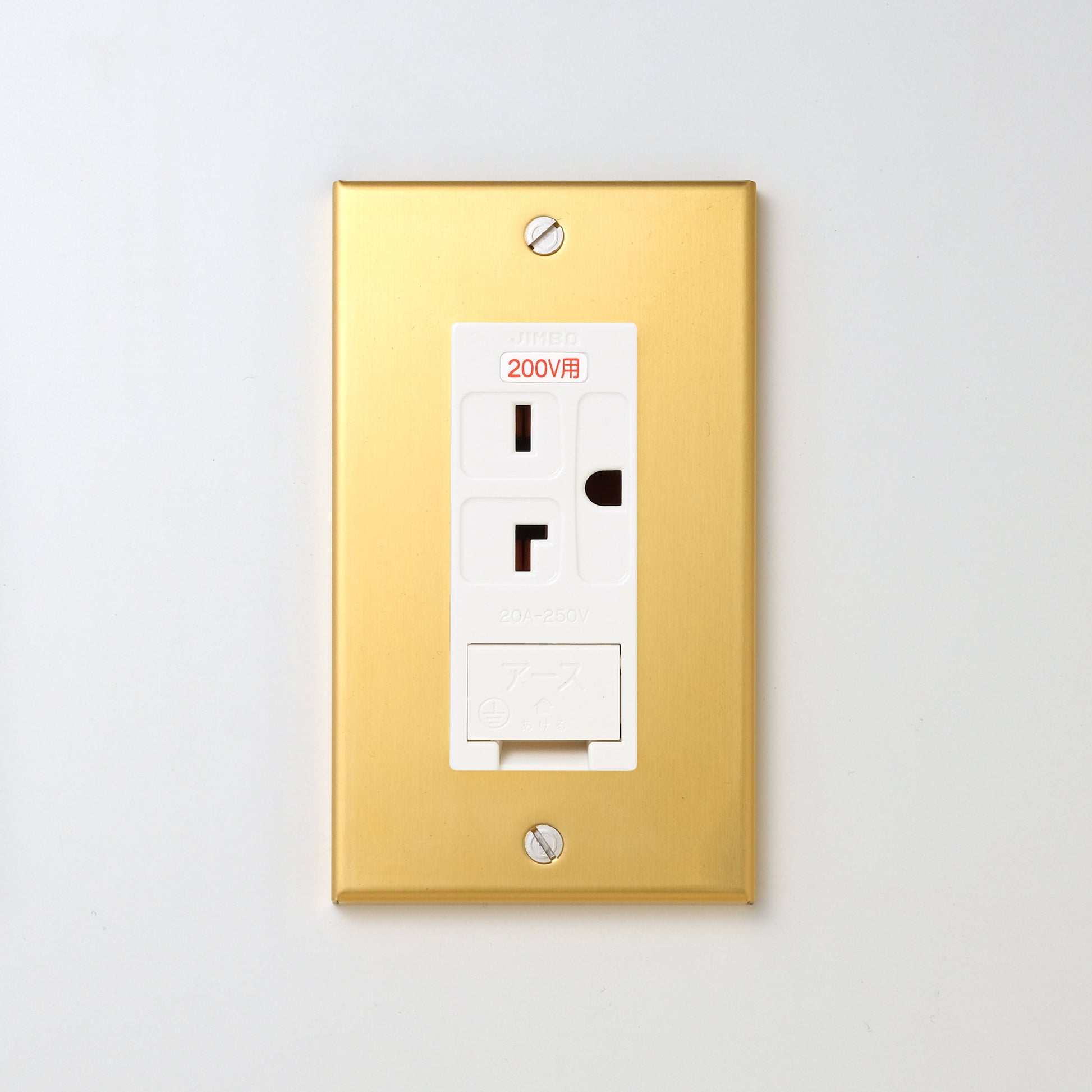 真鍮(素地) プレート <br>+ NK 埋込アースターミナル付接地15A、20Aコンセント 250V ホワイト