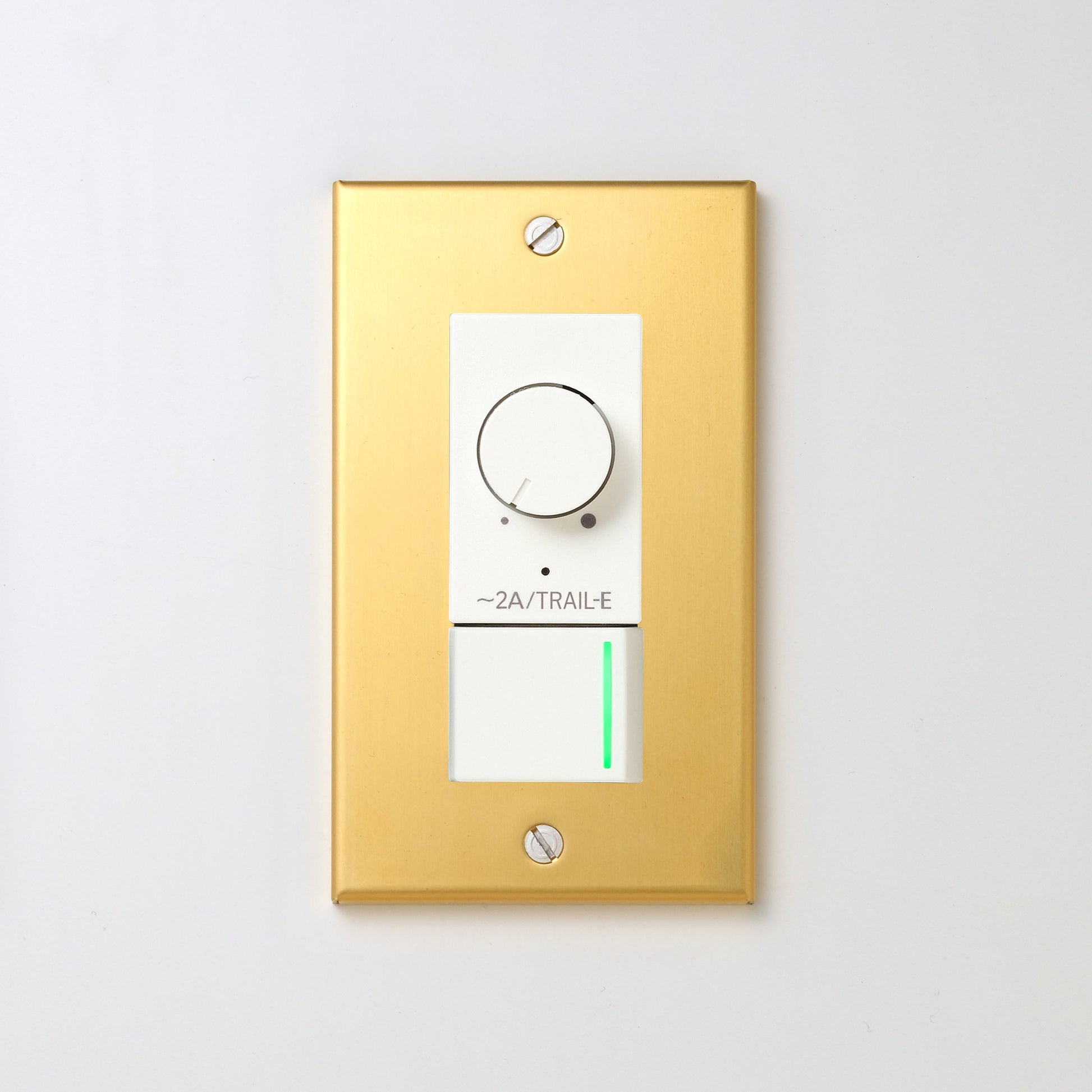 真鍮(素地) プレート <br>+ NK 逆位相制御方式ライトコントロール+片切、3路ガイドランプ(グリーン)スイッチ ホワイト