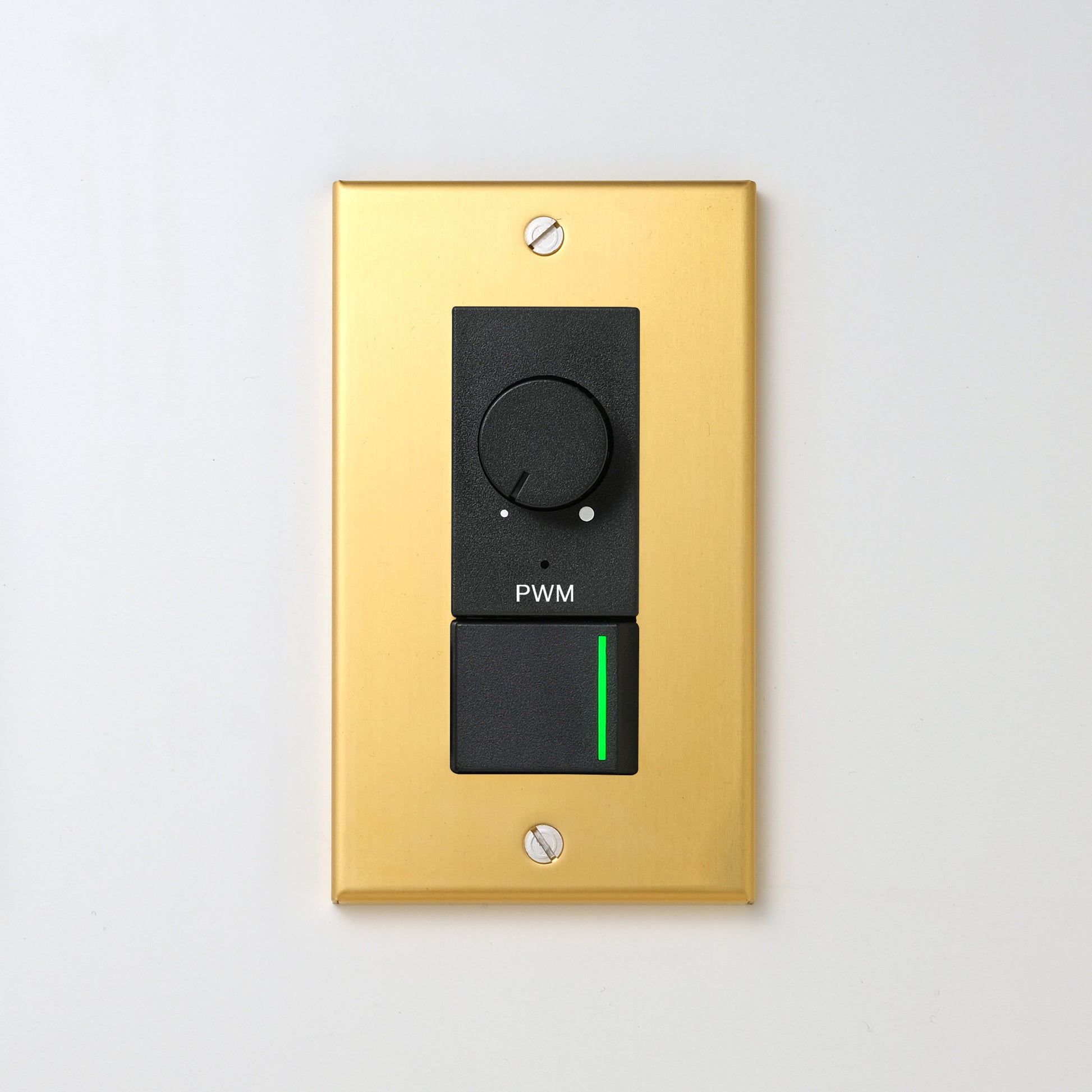 真鍮(素地) プレート <br>+ NK PWM制御方式(1ch)ライトコントロール+片切、3路ガイドランプ(グリーン)スイッチ ブラック