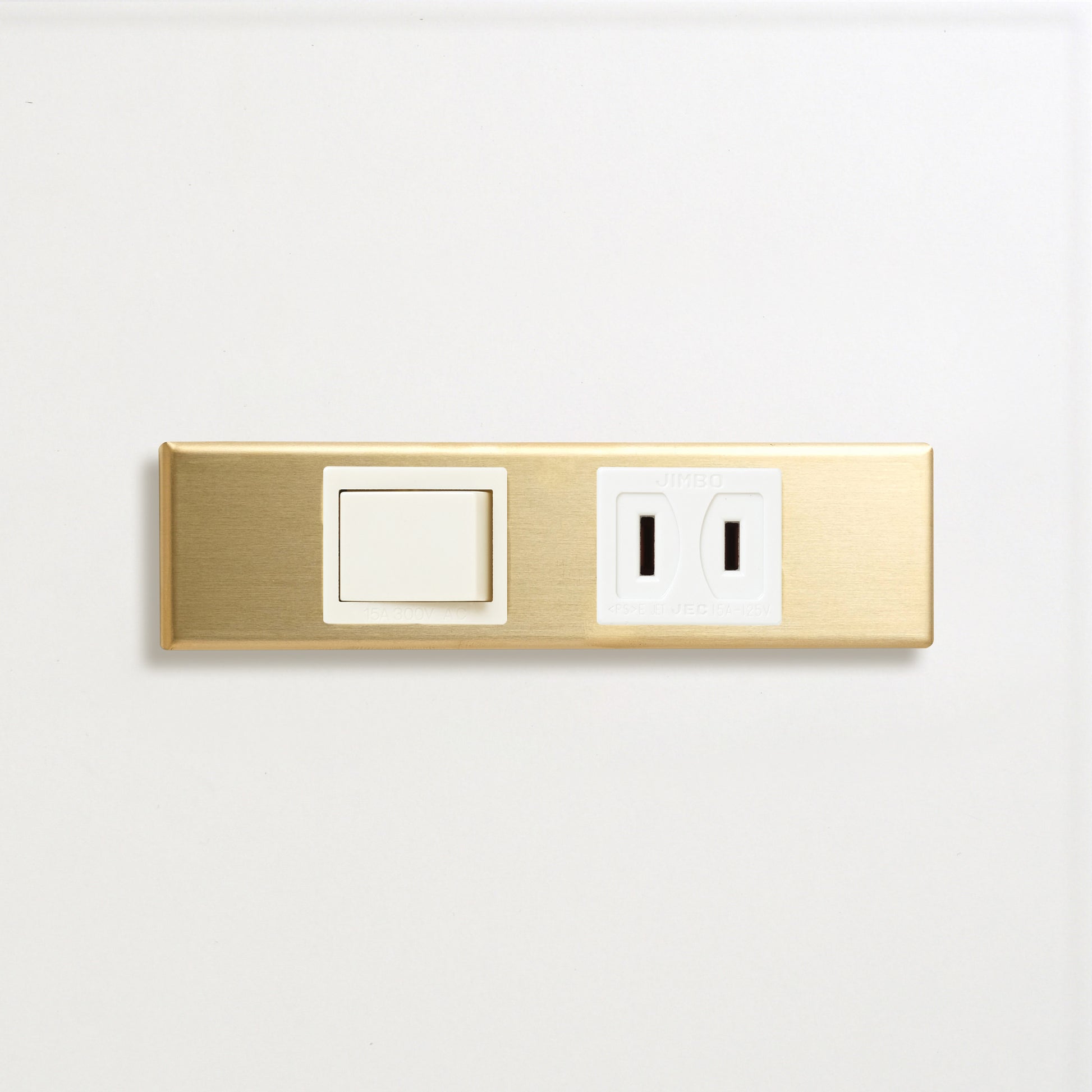 真鍮(素地) 家具用プレート<br>+ パナソニック 埋込スイッチ シングル ホワイト <br>+ NK 埋込コンセント ホワイト