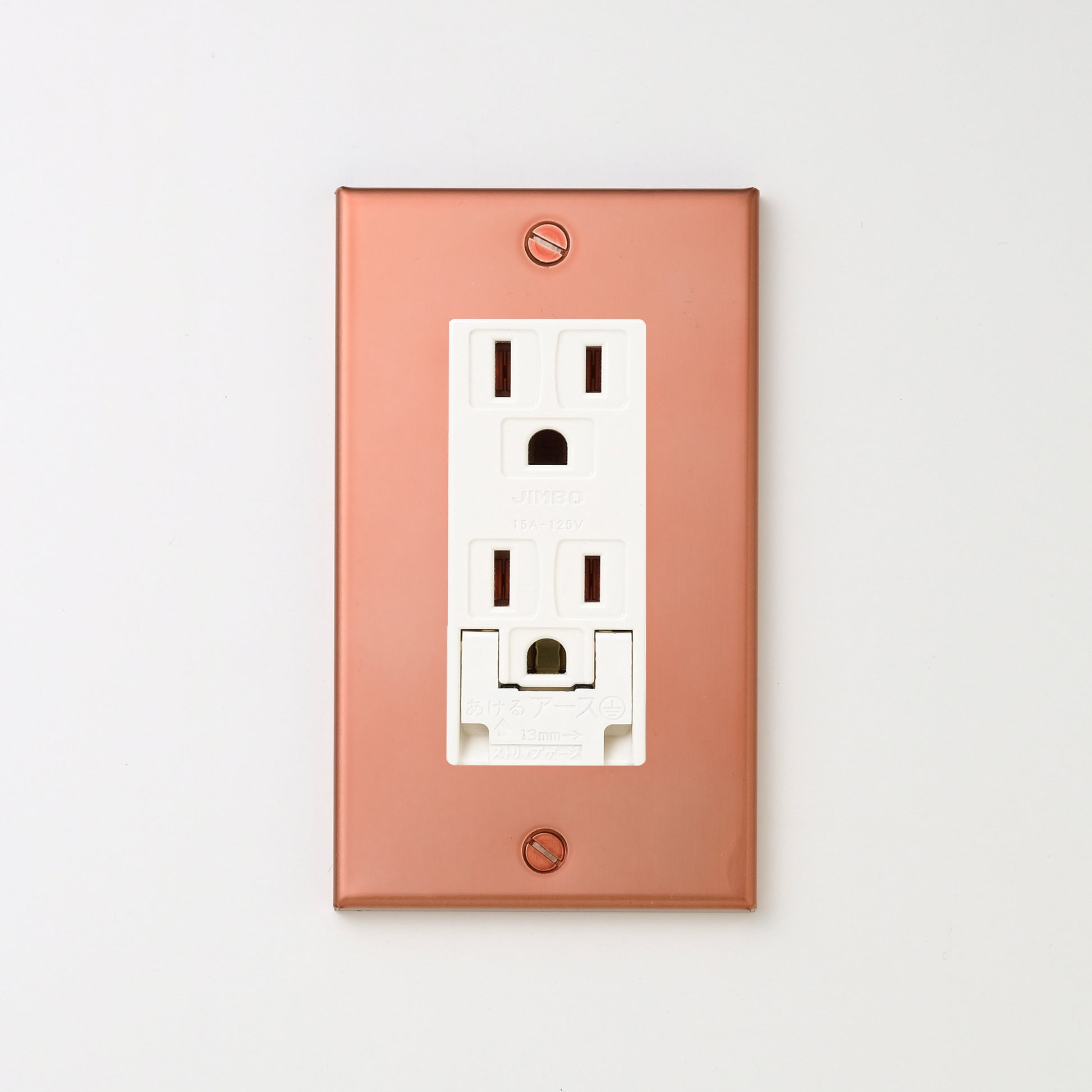 銅色(マット) プレート <br>+ NK 埋込アースターミナル付接地ダブルコンセント ホワイト