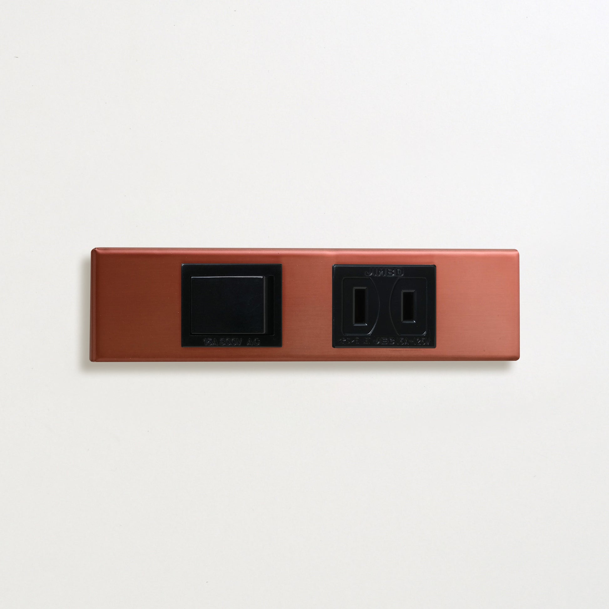 銅色(マット) 家具用プレート<br>+ パナソニック 埋込スイッチ シングル ブラック <br>+ NK 埋込コンセント ブラック