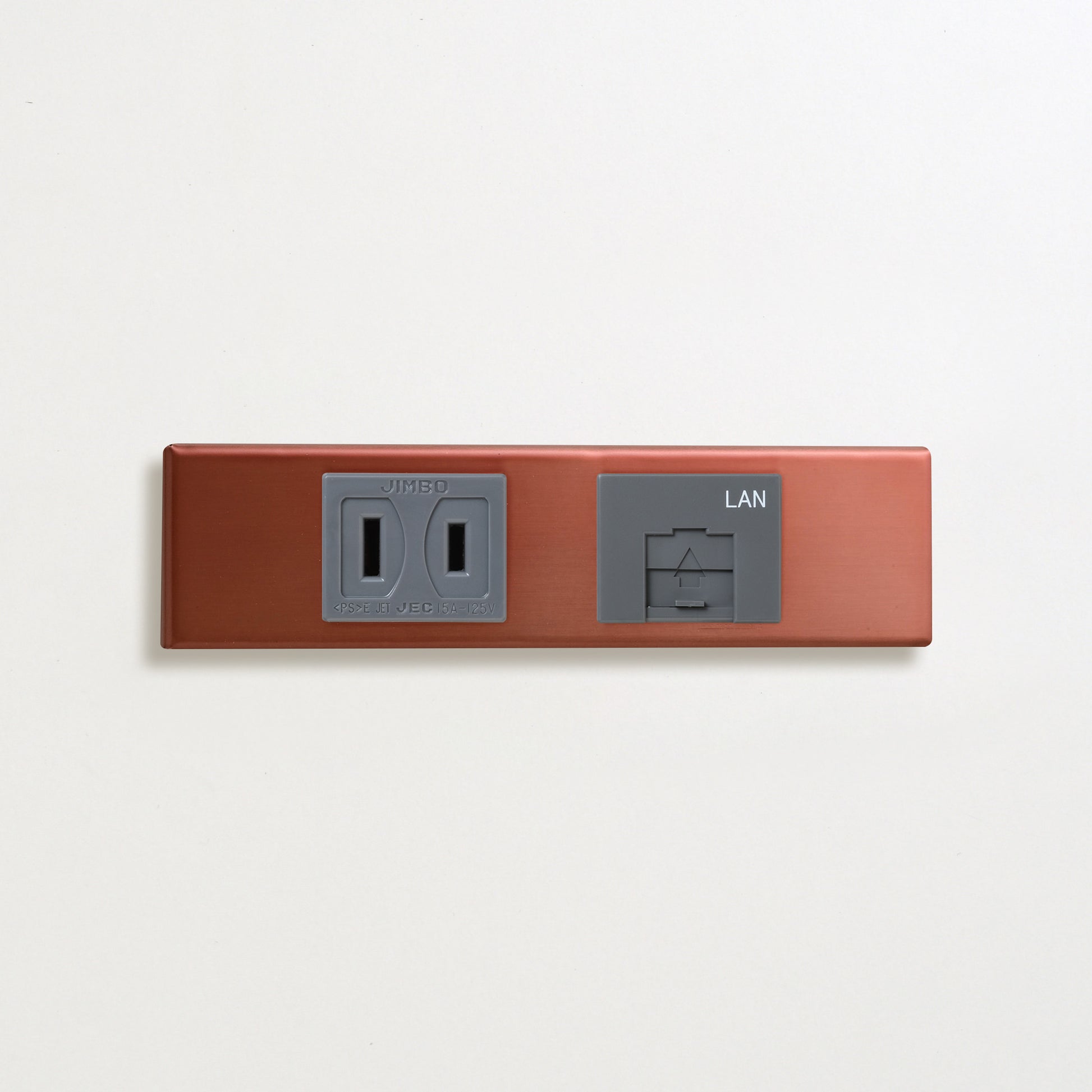 銅色(マット) 家具用プレート<br>+ NK 埋込コンセント グレー <br>+ NK 埋込モジュラジャック8極8心 グレー