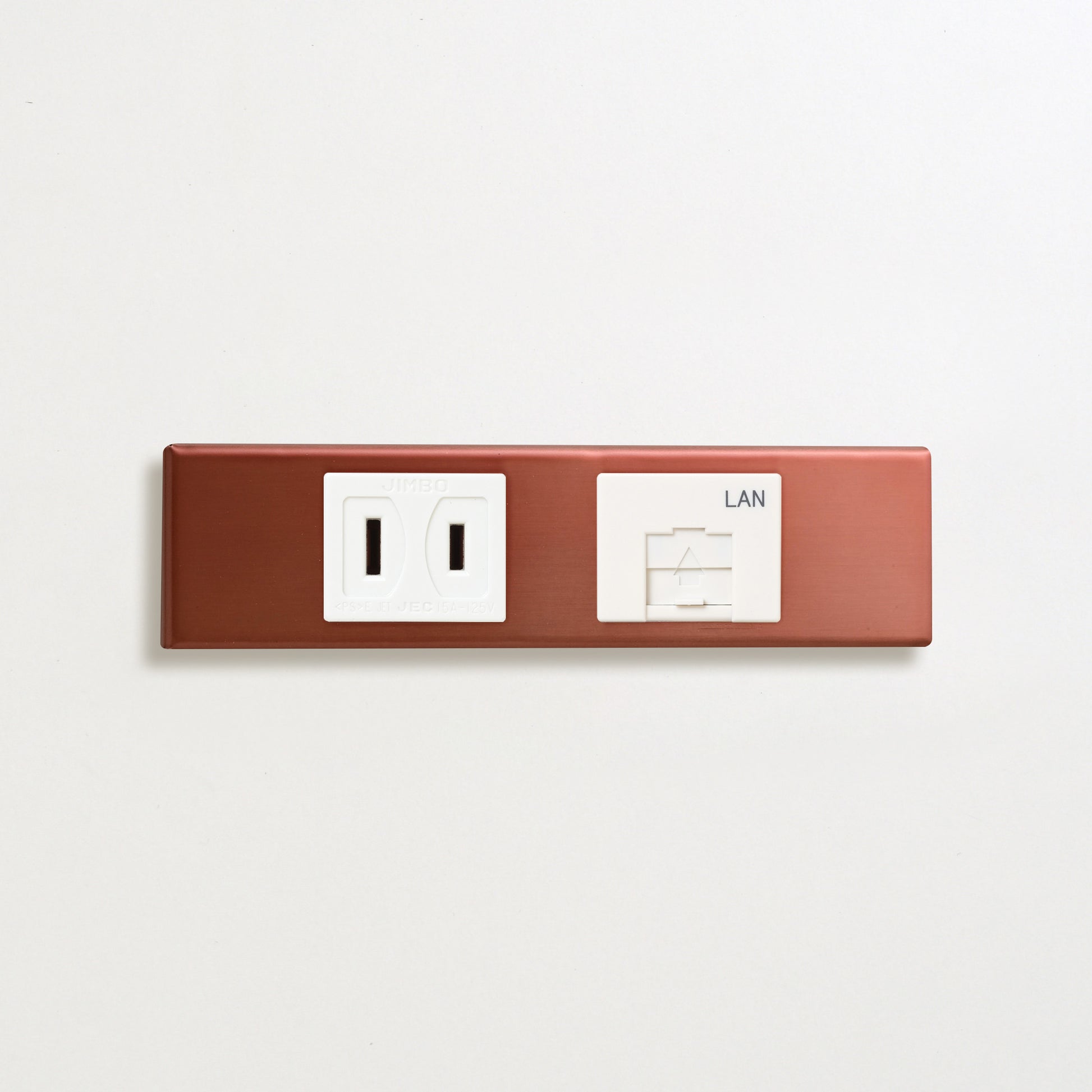 銅色(マット) 家具用プレート<br>+ NK 埋込コンセント ホワイト <br>+ NK 埋込モジュラジャック8極8心 ホワイト