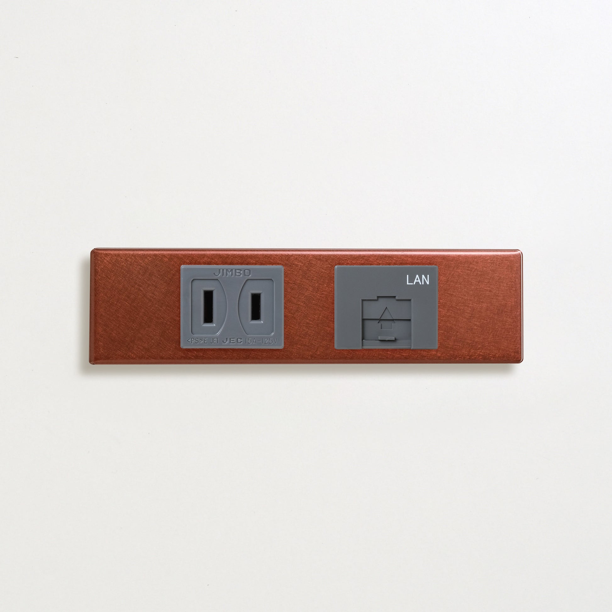 銅色(磨き) 家具用プレート<br>+ NK 埋込コンセント グレー <br>+ NK 埋込モジュラジャック8極8心 グレー