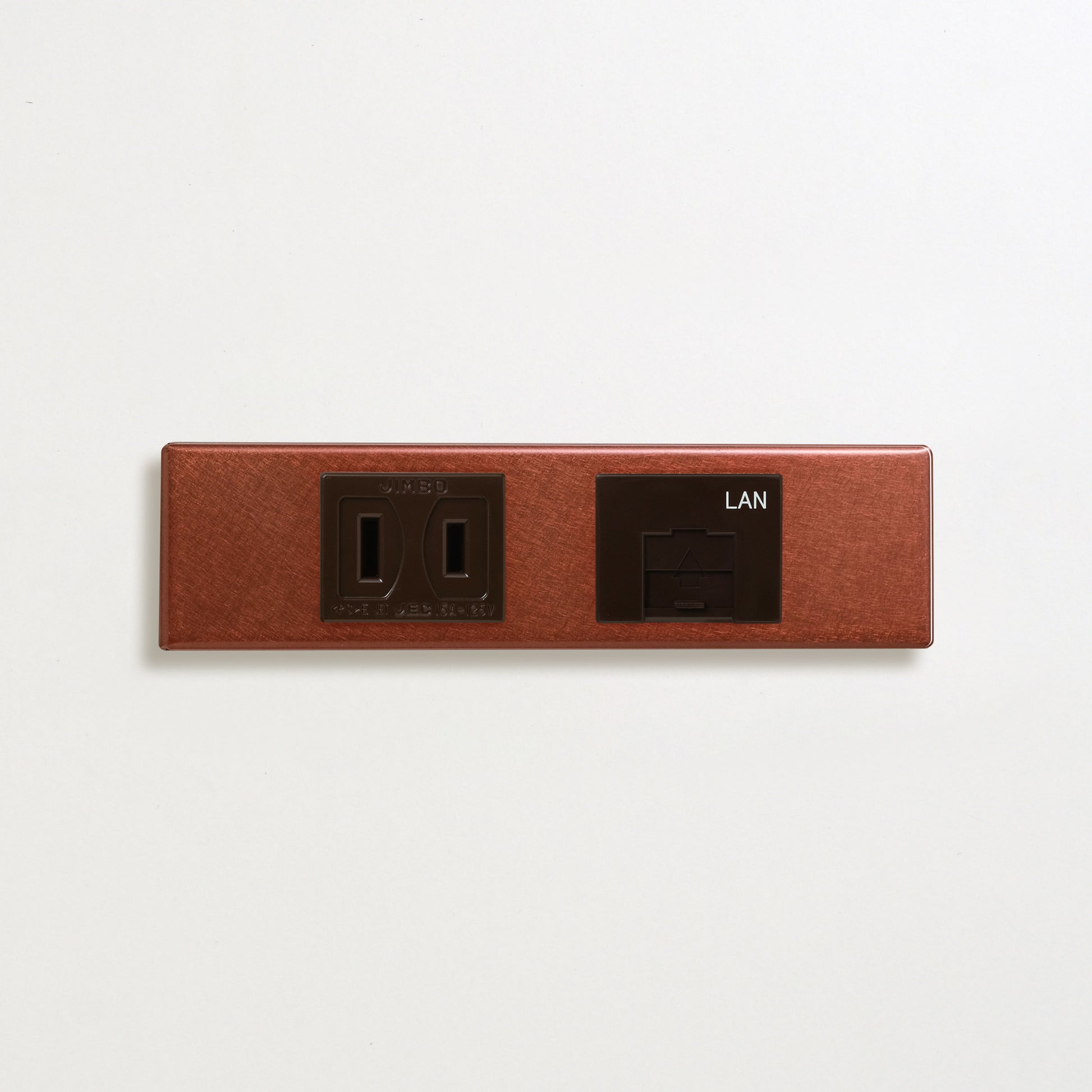 銅色(磨き) 家具用プレート<br>+ NK 埋込コンセント チョコ <br>+ NK 埋込モジュラジャック8極8心 チョコ