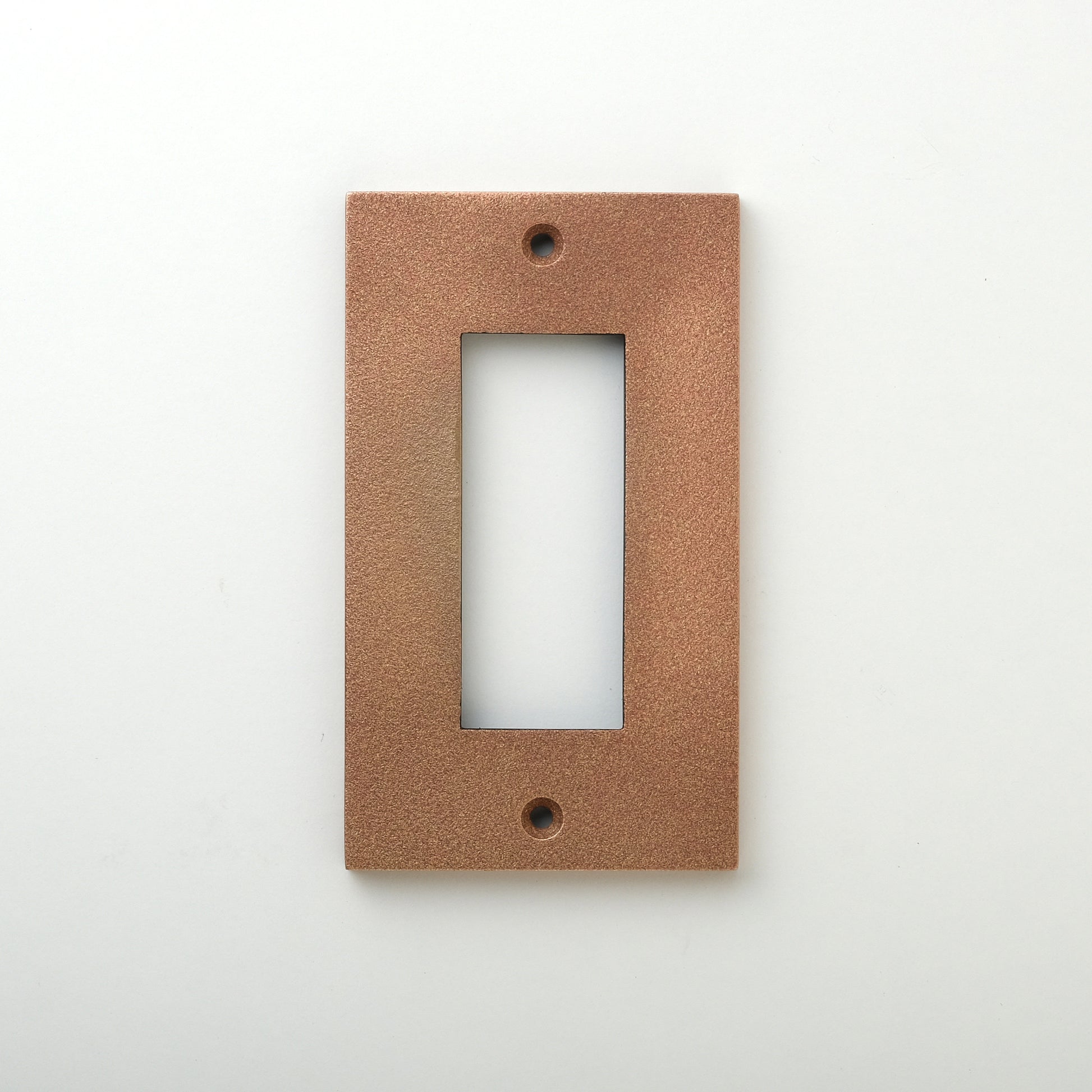 特殊な表面加工技術を使用してアルミダイカスト製のスイッチプレートを真鍮・銅・丹銅・鉄・錫・亜鉛の鋳肌風に仕上げました。