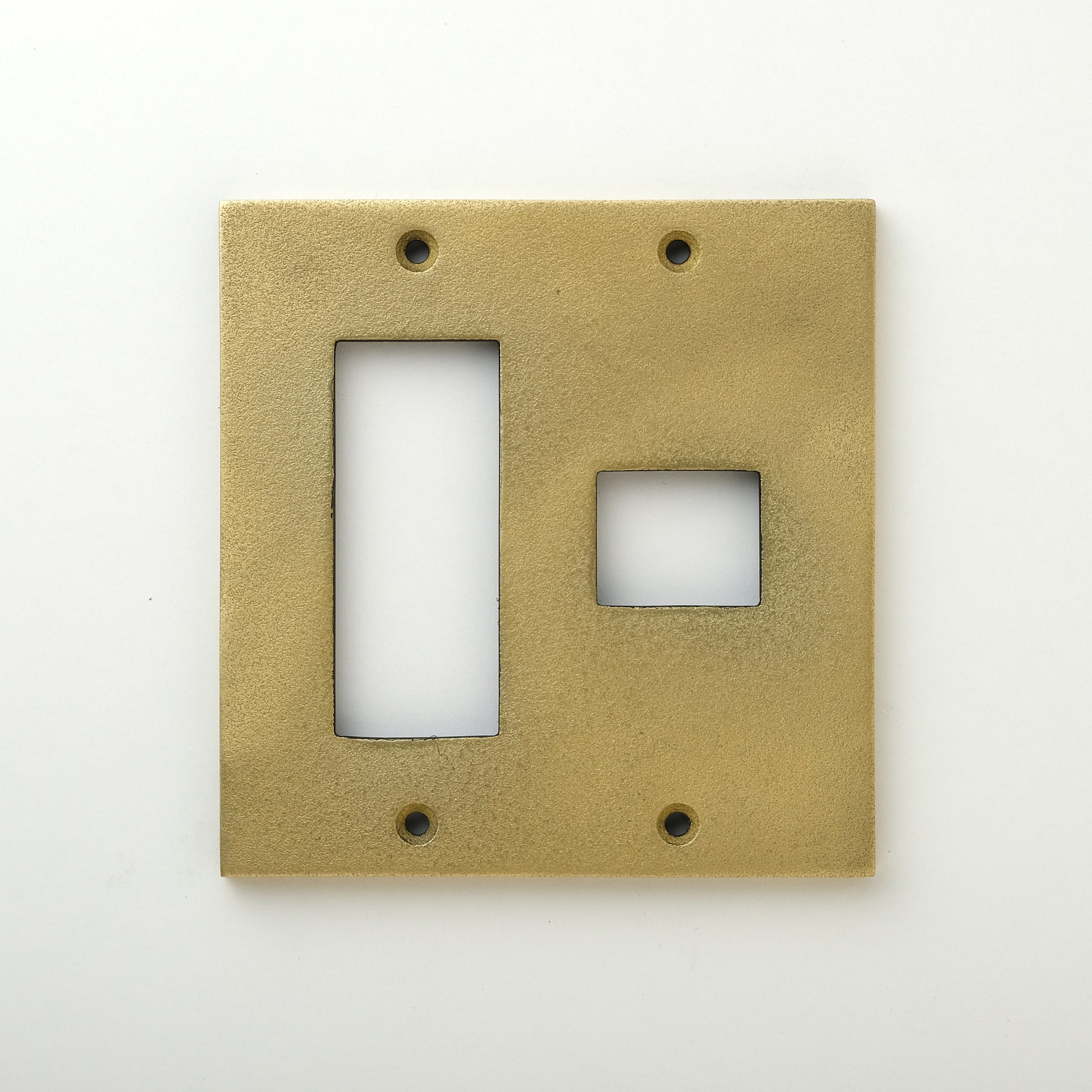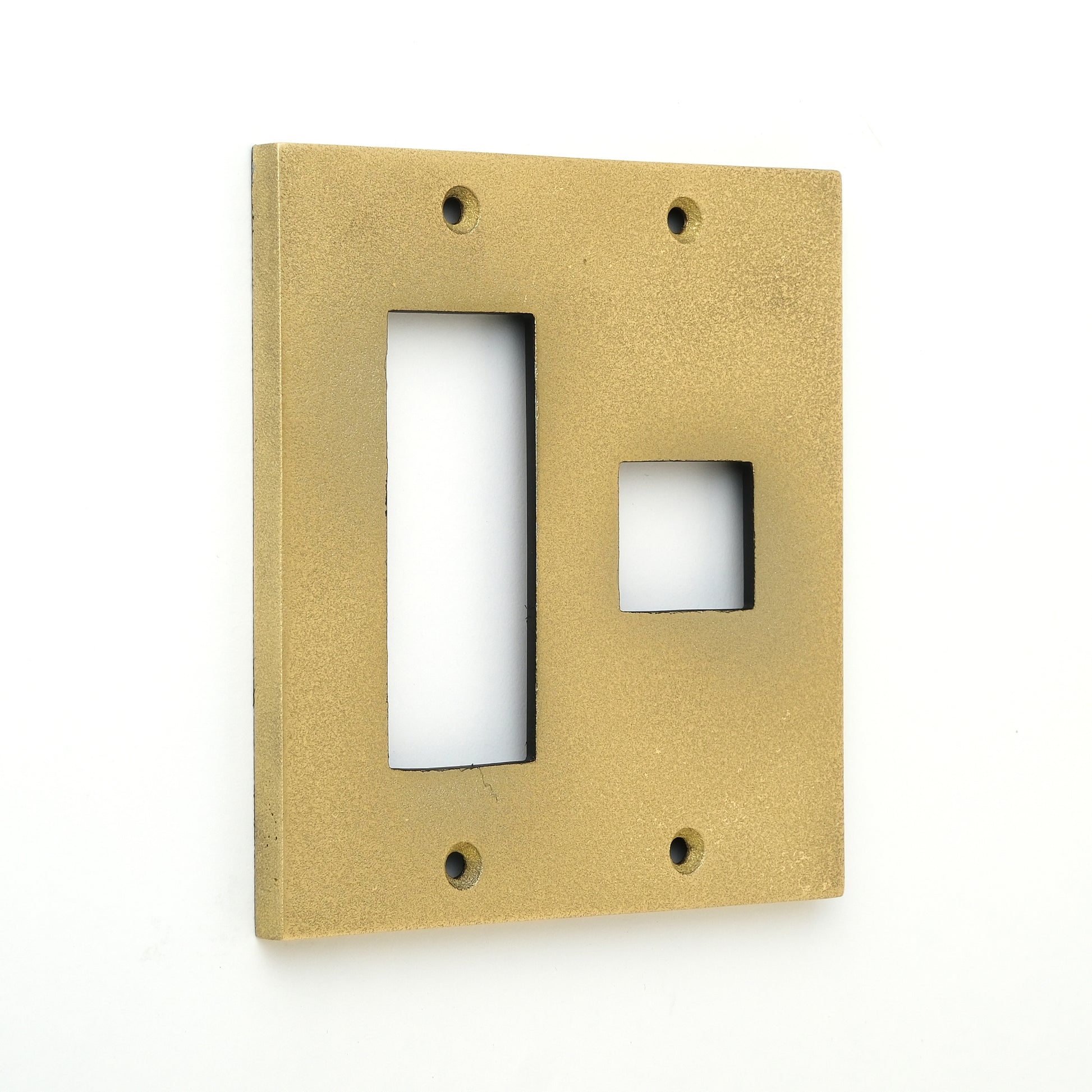 特殊な表面加工技術を使用してアルミダイカスト製のスイッチプレートを真鍮・銅・丹銅・鉄・錫・亜鉛の鋳肌風に仕上げました。
