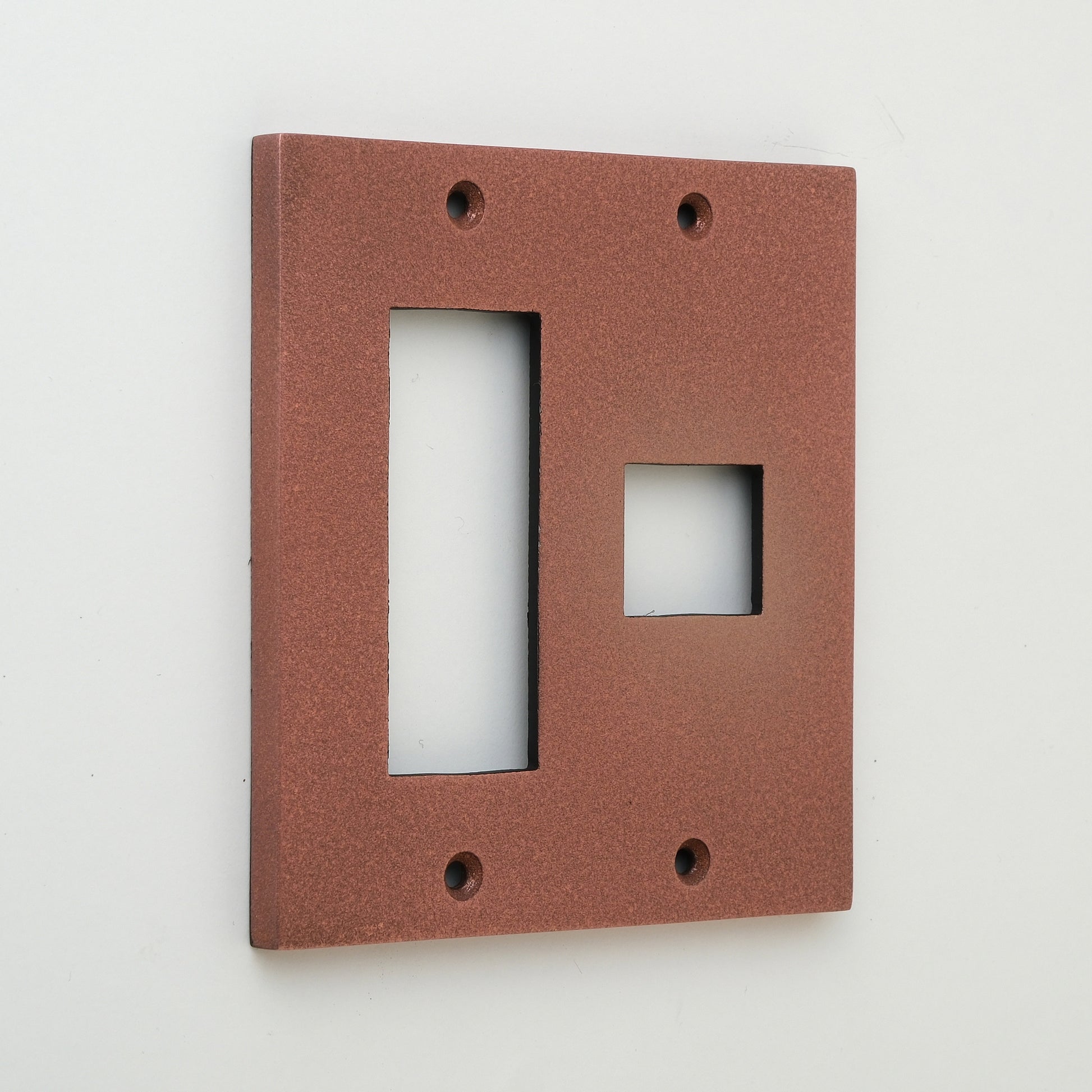 特殊な表面加工技術を使用してアルミダイカスト製のスイッチプレートを真鍮・銅・丹銅・鉄・錫・亜鉛の鋳肌風に仕上げました。